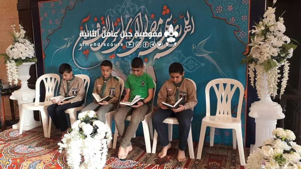 حلقات تلاوة قرآنية من ضمن أنشطة النوادي الكشفية الرمضانية، للكشفيين في فوج الإمام الحسن العسكري (ع) عدشيت.
