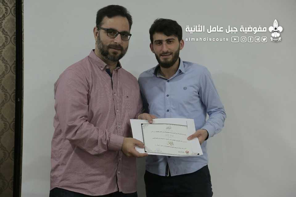 بحضور مفوّض الفنون والمواهب ومفوّض المنطقة الثانية، كرّمت جمعيّة كشّافة الإمام المهدي -عجّل الله فرجه- فريق عمل فيديو كليب "يــومُ الأمــلْ" الذي أُنتج في أجواء الخامس عشر من شعبان ولادة المهدي الموعود- عجّل الله فرجه.