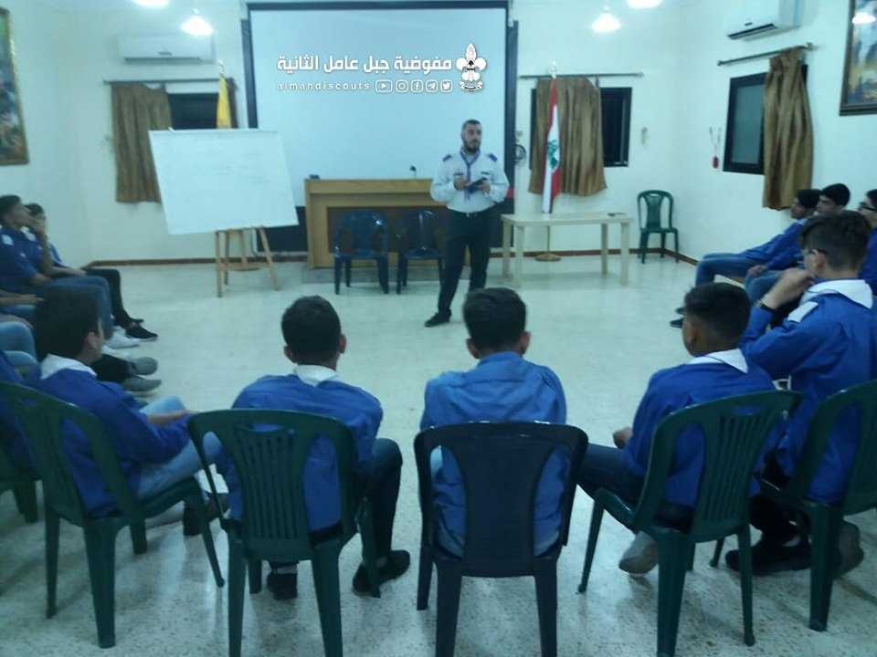 افتتاح النادي الكشفي الصيفي الخاص بعشيرة الجوالة في فوج المجتبى (ع)/تول، بلقاءٍ أقيم للكشفيين مع قائد القطاع القائد خليل ناجي.