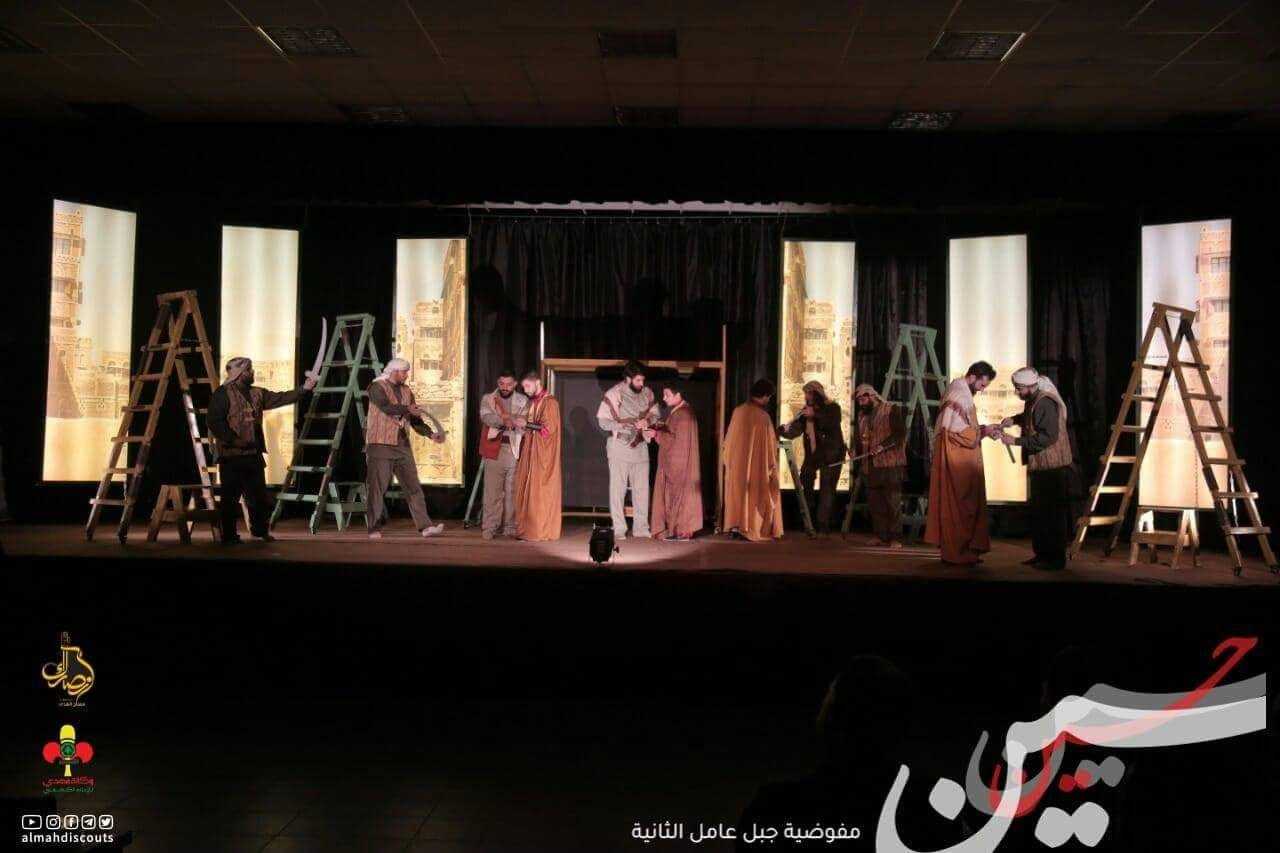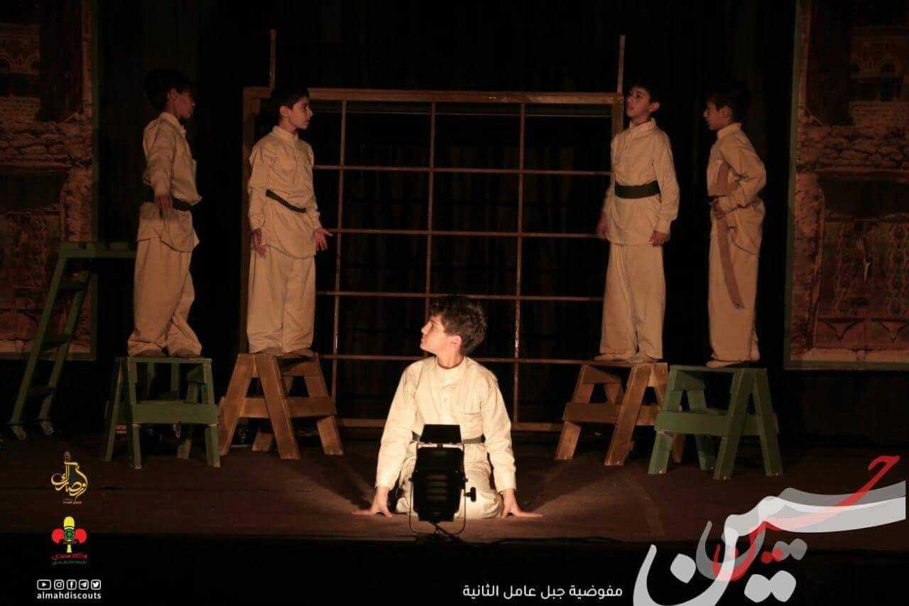 عملٌ فنّيٌ عاشورائي متألق وجديد فيه الكثير من عزّة وشجاعة وبطولة كربلاء، افتتحته مفوضية جبل عامل الثانية رسميًا عصر اليوم تحت عنوان يٰسِ (ياسين) في قاعة تجّار مدينة النّبطية، بحضور مسؤول المنطقة الثانية في حزب الله، رئيس جمعية كشّافة الإمام المهدي (عجّل الله فرجه)، ممثّل بلدية مدينة النّبطية، شخصيات كشفية وتربوية وفعاليات، حشدٌ من الحضور وأهالي الممثلين.