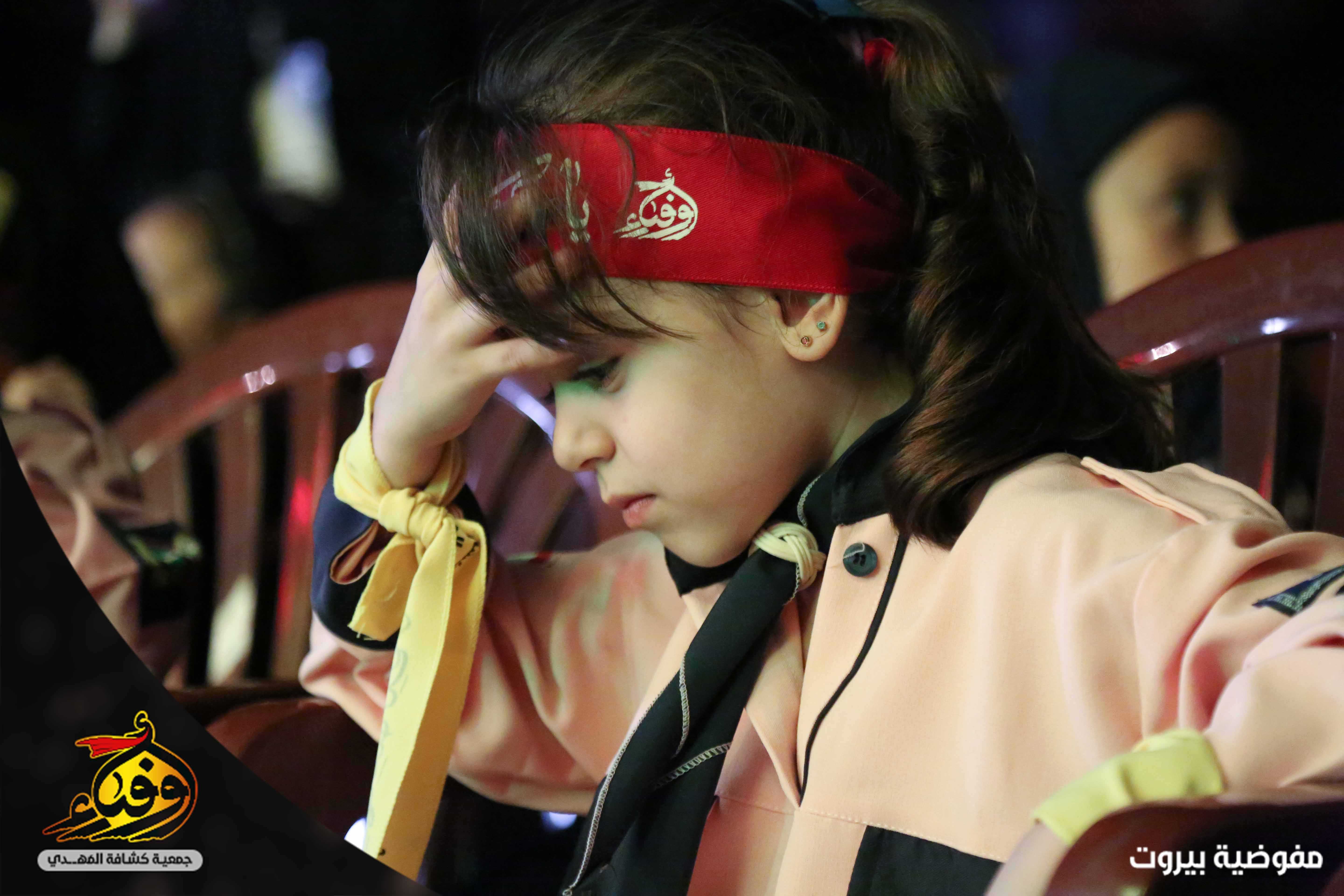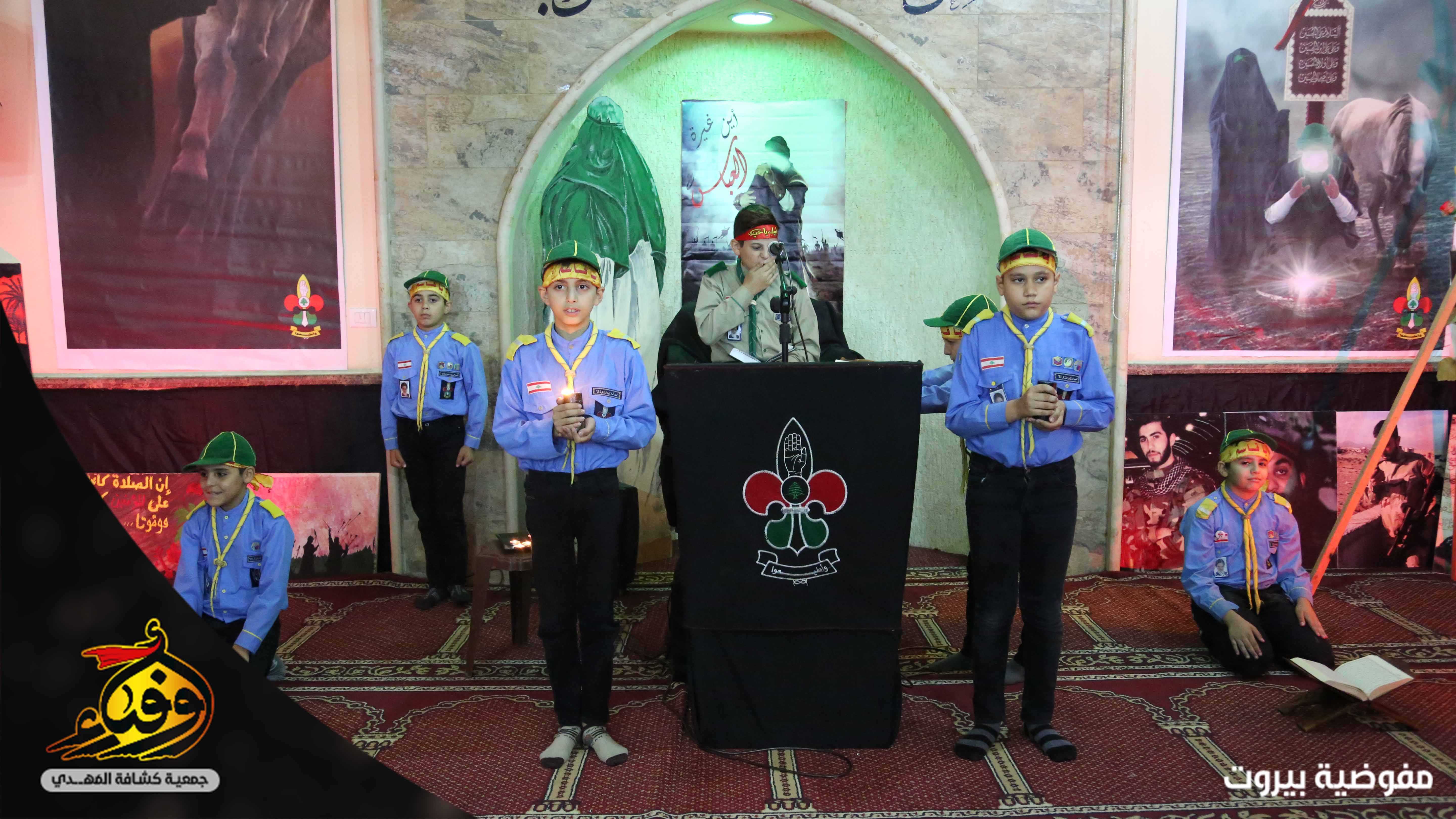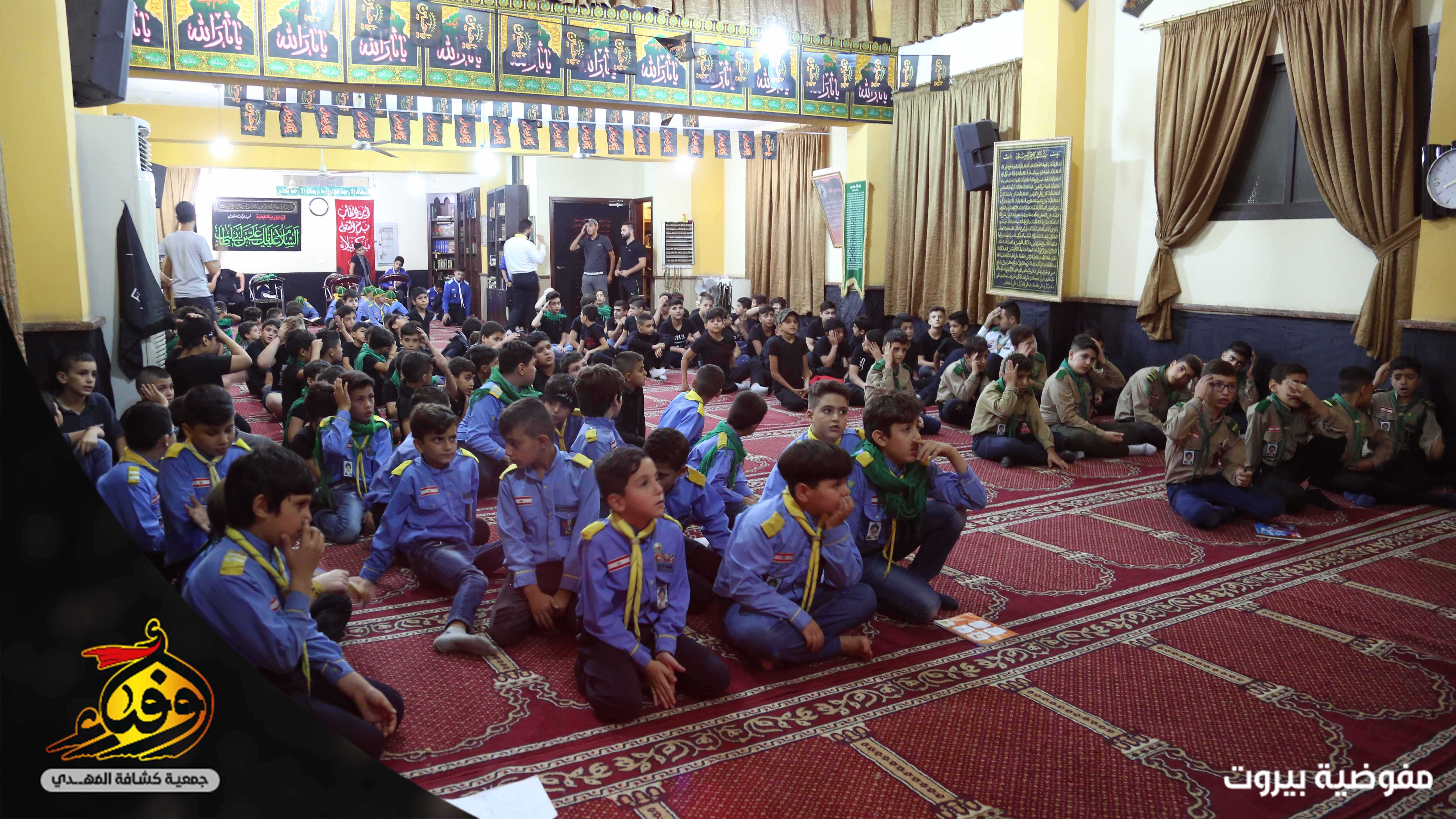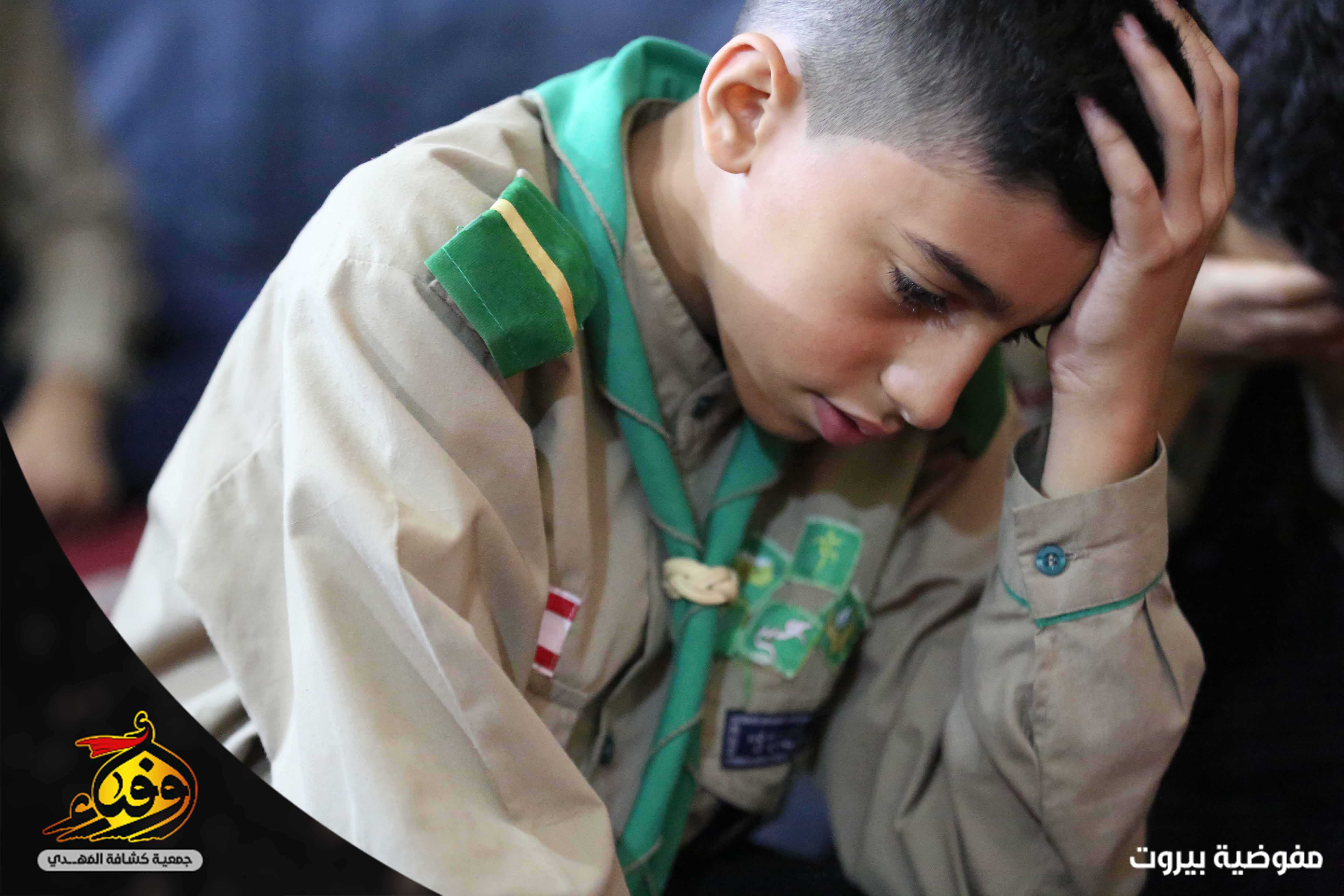9934 كشفي وكشفية في اليوم السادس من محرّم في بيروت شاركوا في الاحياءات العاشورائية التي تقيمها مختلف افواج المفوضية للفتية والناشئة يلطمون الصدر مواساة ويذرفون الدمع حزناً على مصاب المولى ابا عبد الله (ع)