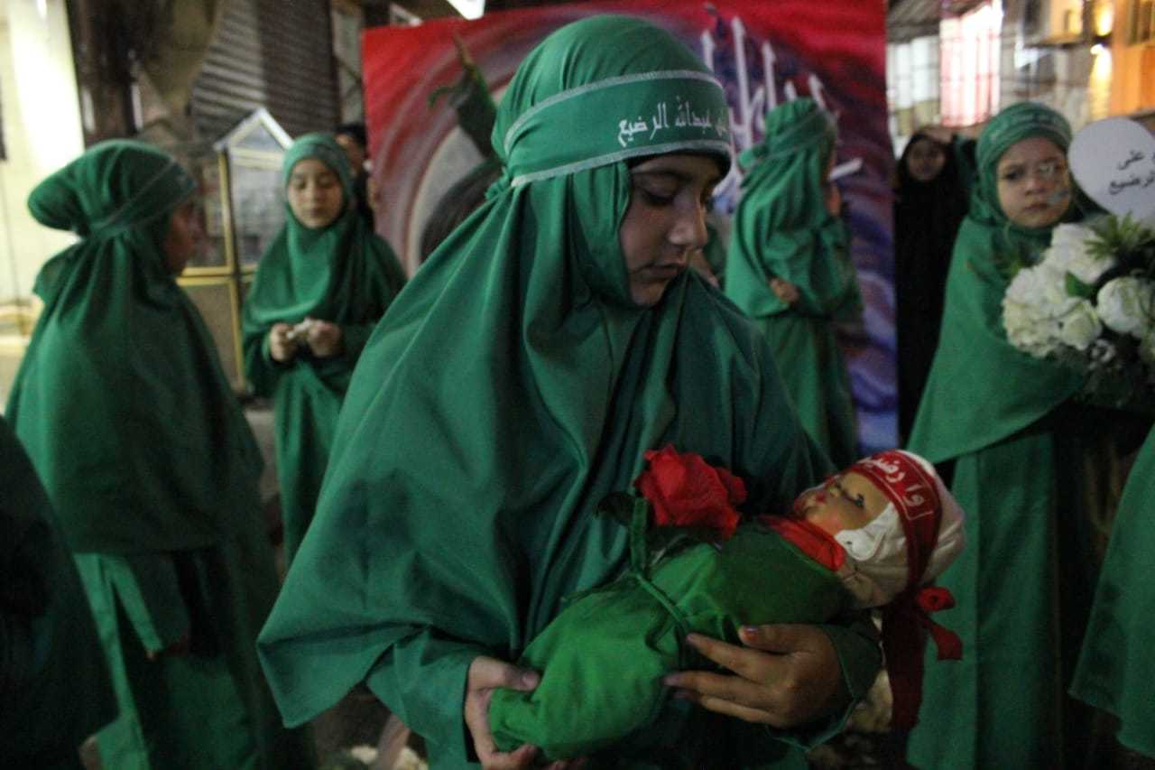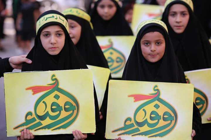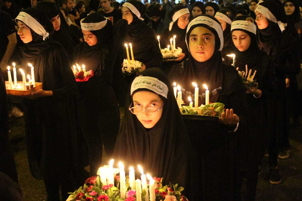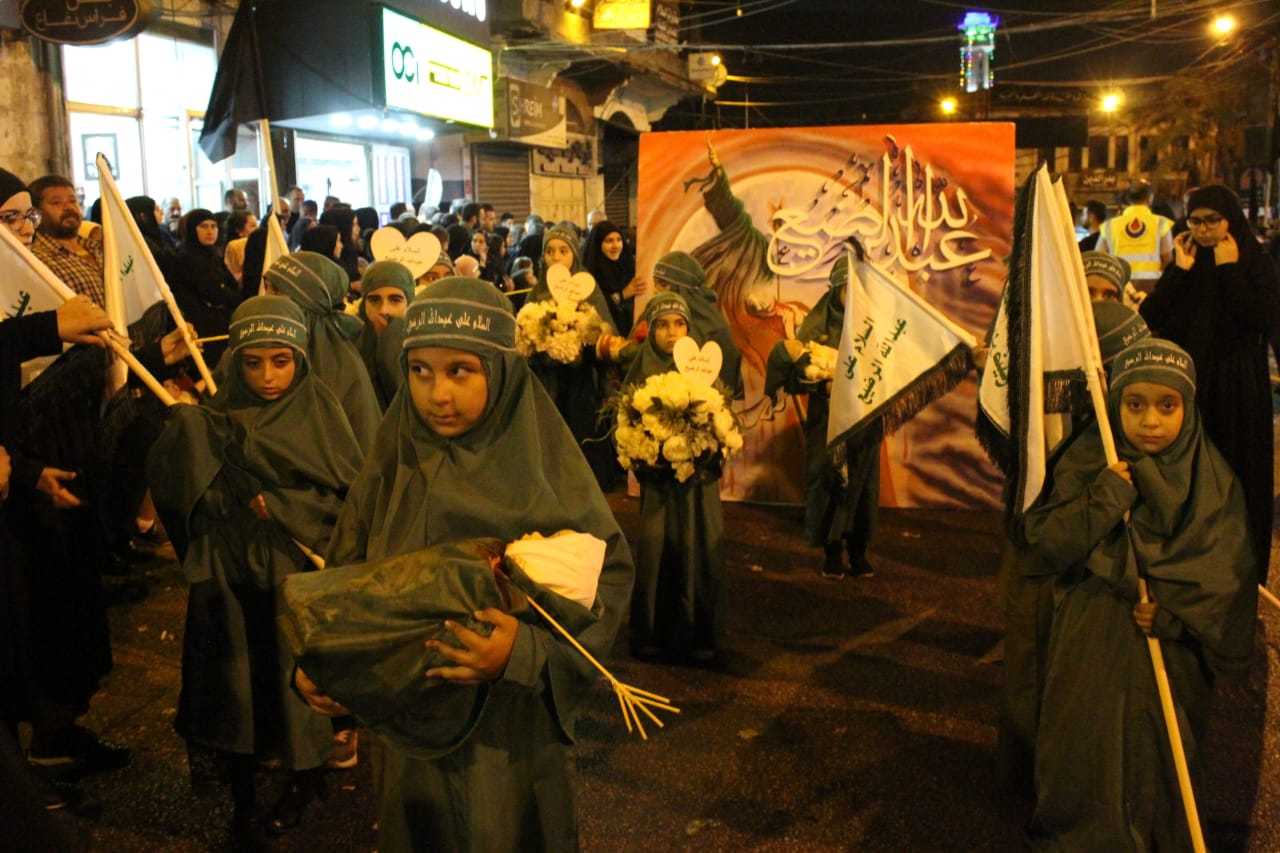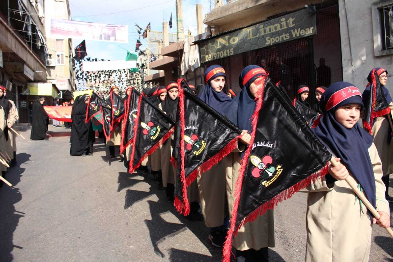 فسارت في اغلب القرى مسيرات التلبية والنصرة الحسينية، وفيها رسم الاطفال المشاركون باكفانهم وعصباتهم الوان عاشوراء البطولة والفداء،