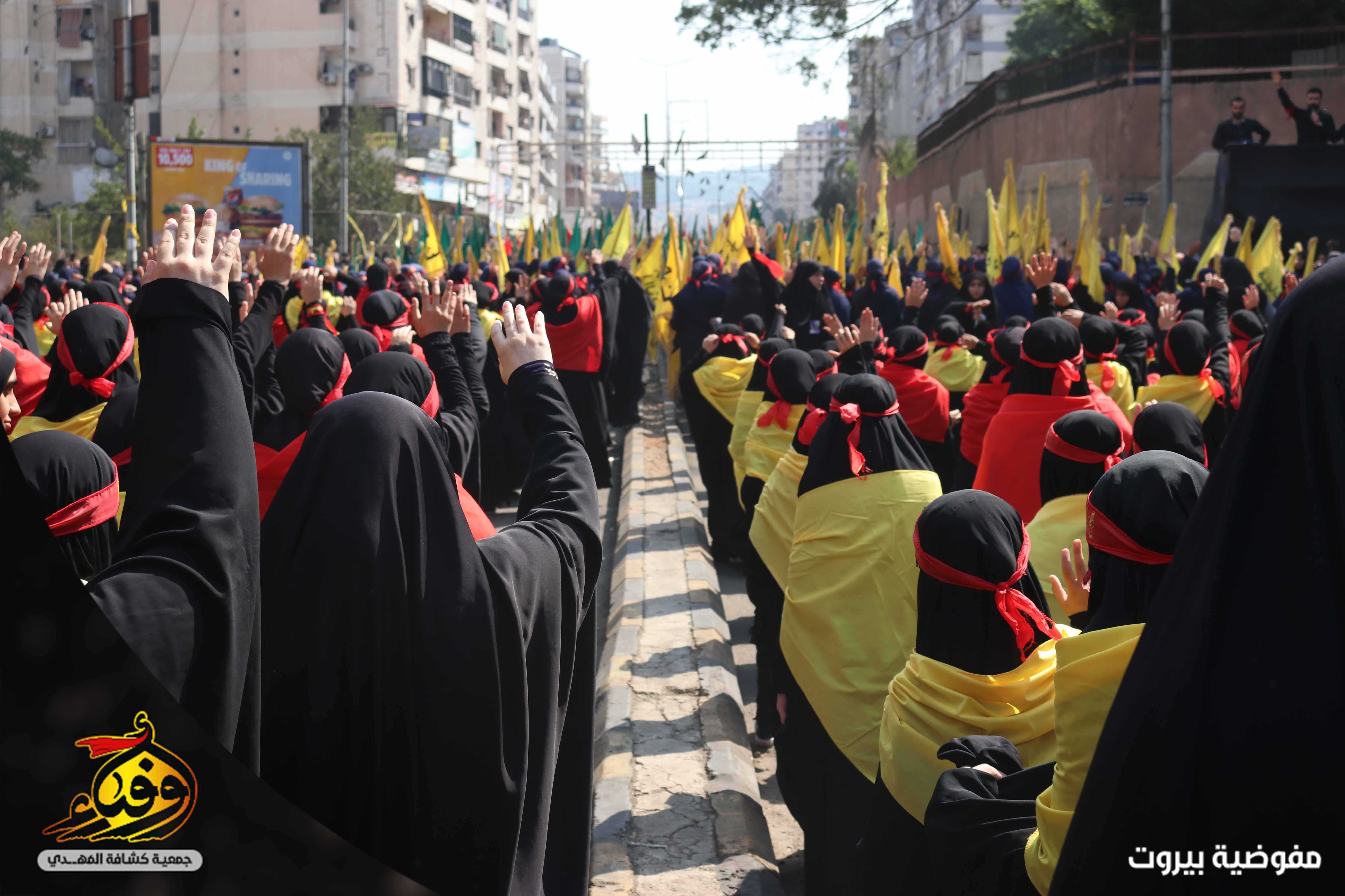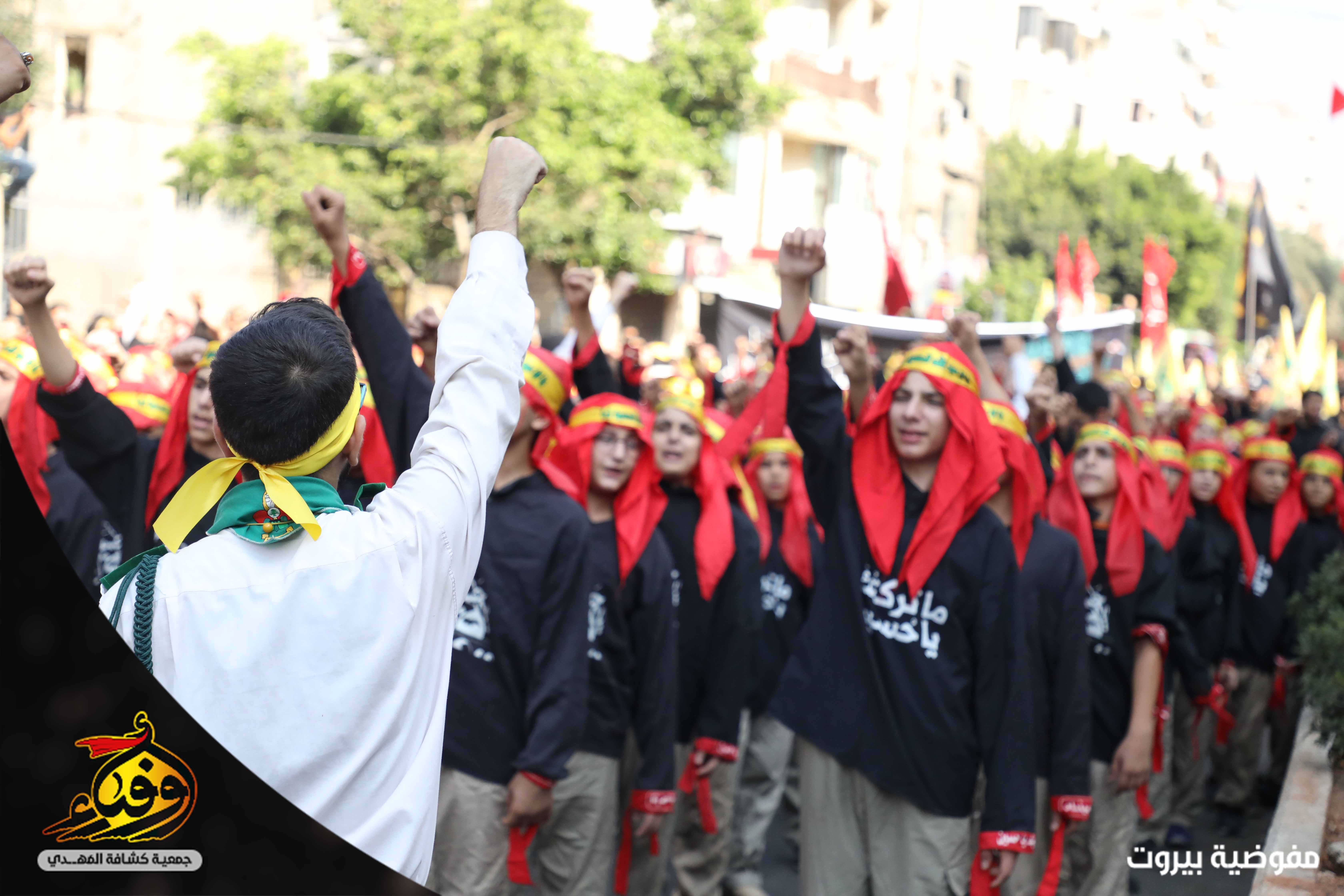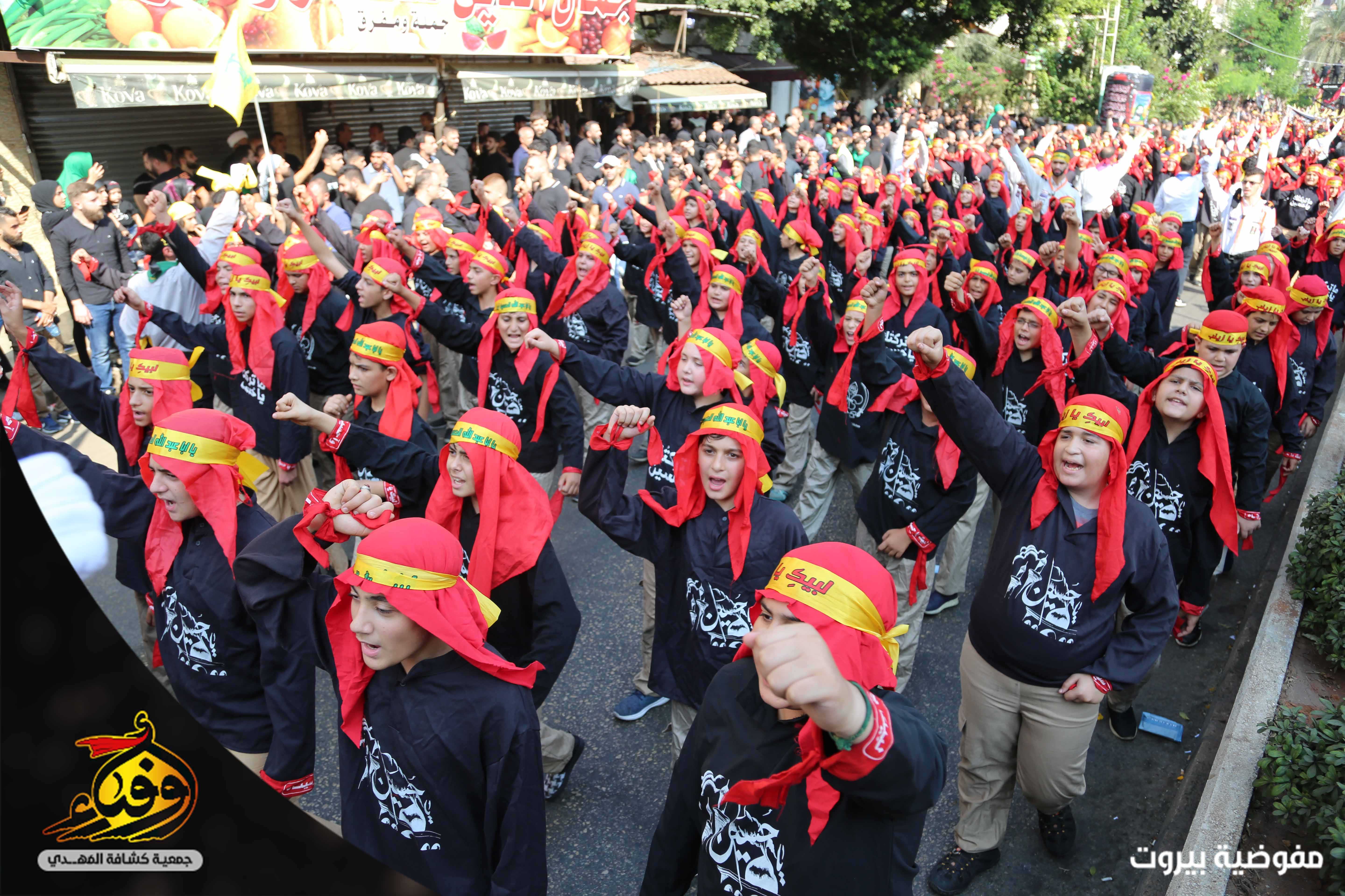 في مشهد مهيب بدأت مسيرة العاشر من محرّم يتقدمها 3793 حسيني وزينبيّة من مفوضية بيروت في جمعية كشافة المهدي (عج) حيث انطلقت مسيرة الاخوة من تقاطع القائم (عج) في الضاحية الجنوبية لبيروت باتجاه دوار الكفاءات تقدمها حملة صور القادة والفرقة الموسيقية المركزية وحظائر الاعلام وسريّة من القادة والجوالة مؤدين عرضا مميزا للنظام المرصوص تلتهم سرايا كوكبة الاعلام بالاضافة الى مواكب اللطم للكشافة.. اما مسيرة الاخوات انطلقت من الرويس باتجاه دوار الكفاءات تتقدمها الفتيات باللباس الكشفي حاملين الرايات و في موكب حاشد انتظمت الكشفيات مرتدين العباءة الزينبية لتختتم المسيرة بالاستماع لكلمة سماحة الامين العام حفظه الله.
