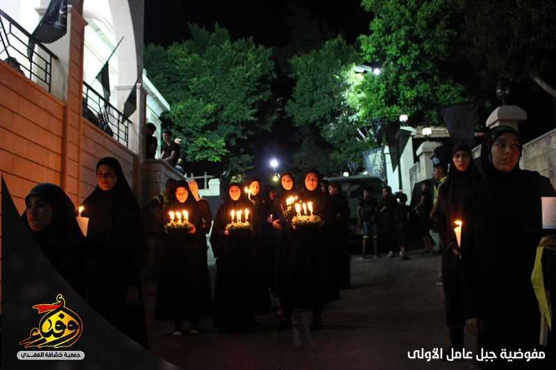 مسيرة شموع في فوج السيدة فاطمة (عليها السلام)/العباسية تأسيا بالسيدة زينب (عليها السلام) والسبايا.