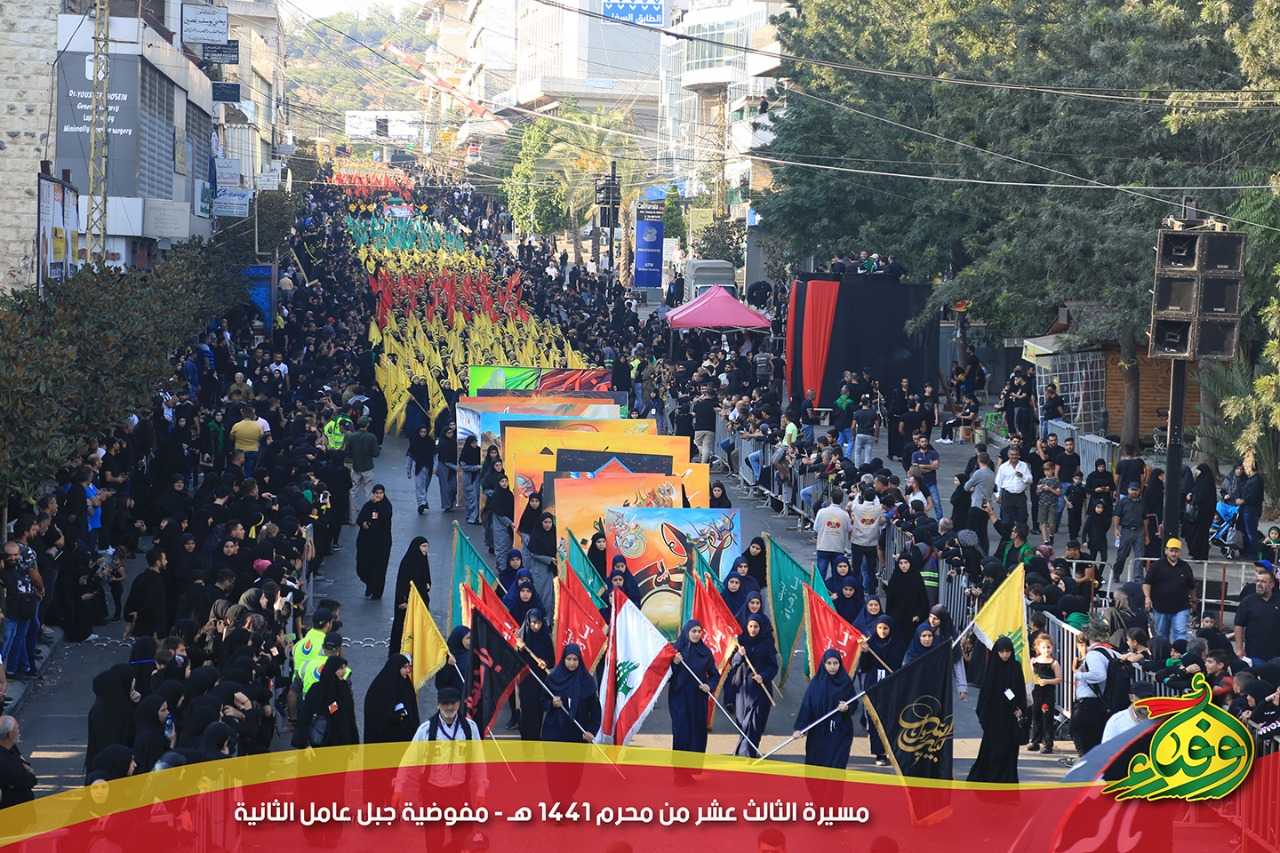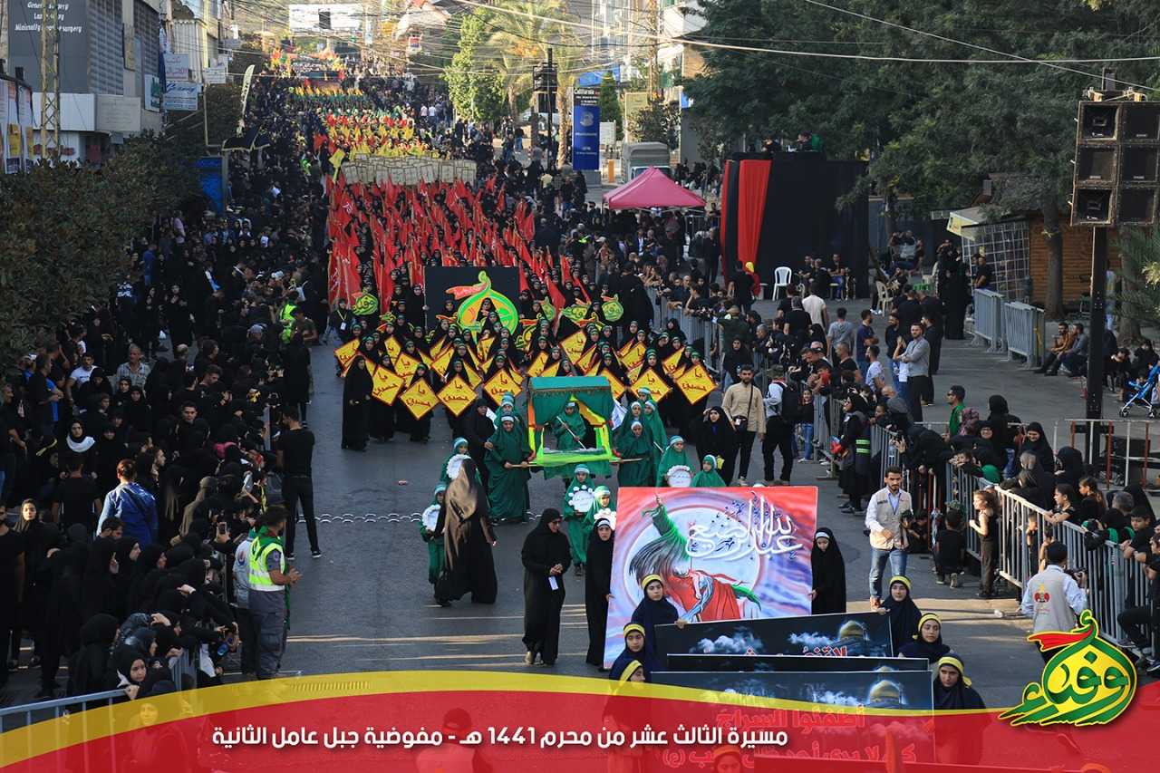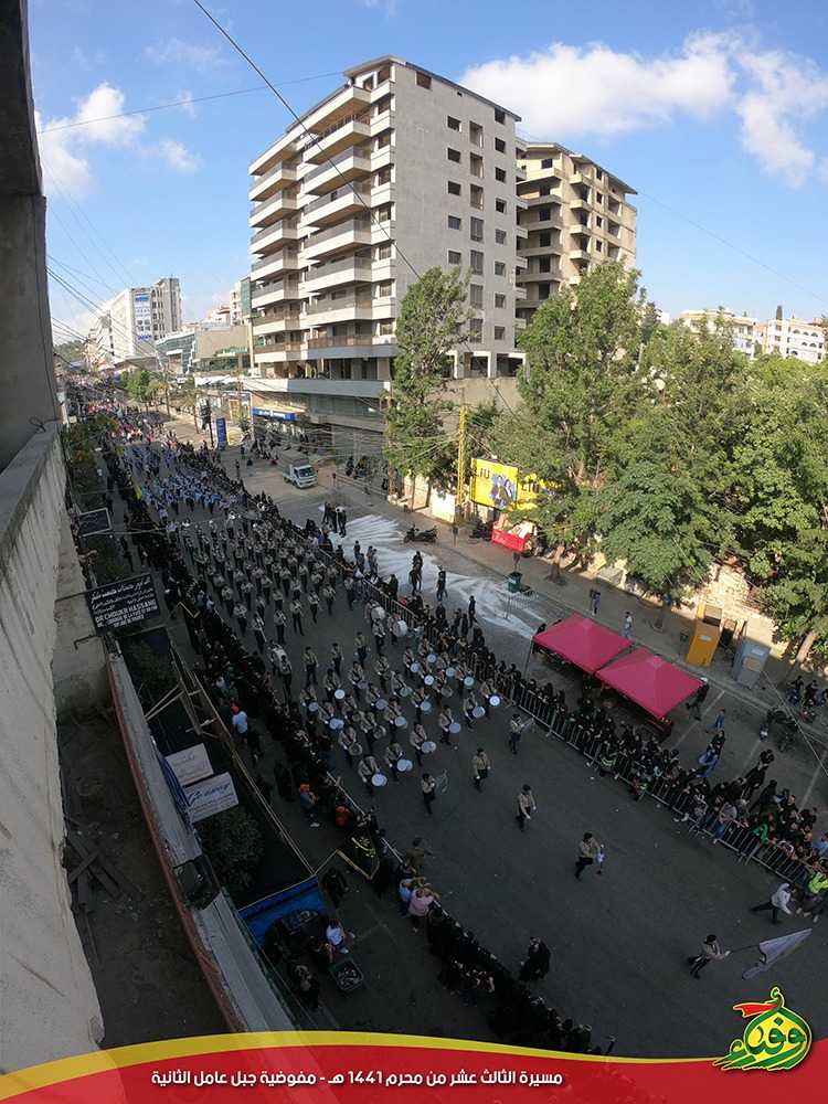 المَسيرةِ العاشورائيةِ التي تَسيرُ بِها مُفوضيةُ جبلِ عامِلَ الثانية في الثّالثِ عشرَ من مُحرَم في مَدينةِ النَّبَطية، والتي تُقامُ سَنوياً تأسّياً بِموكبِ السَّبي لآلِ البَيتِ الأَطهار ِ(عليهم السلام)، سار فيها الموكب المَهيبُ واخْترقَْ شوارِعَ المَدينة الرَّئيسية تَقَدَّمَه حَملةُ الراياتِ الحُسينيةِ والكَشْفية وصُورَ الشُّهَداء.
