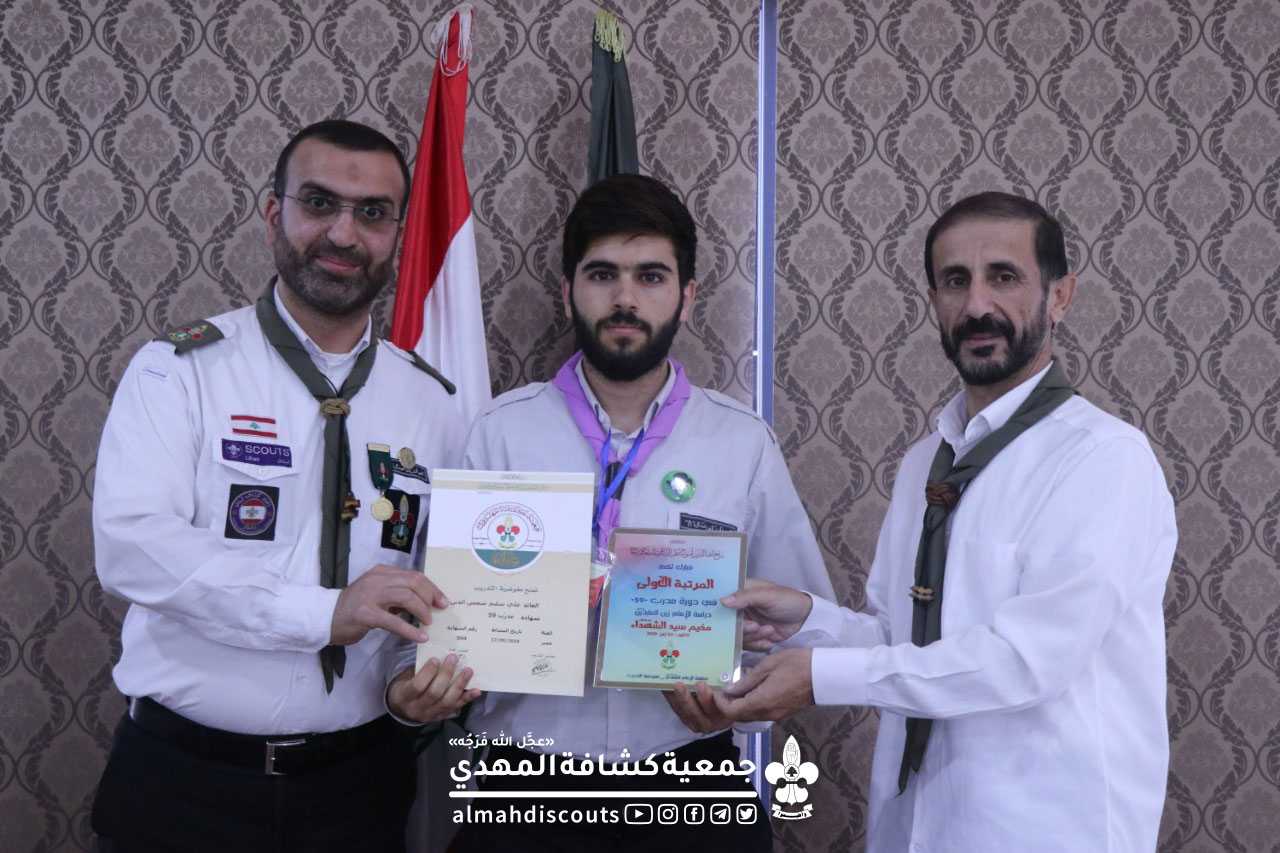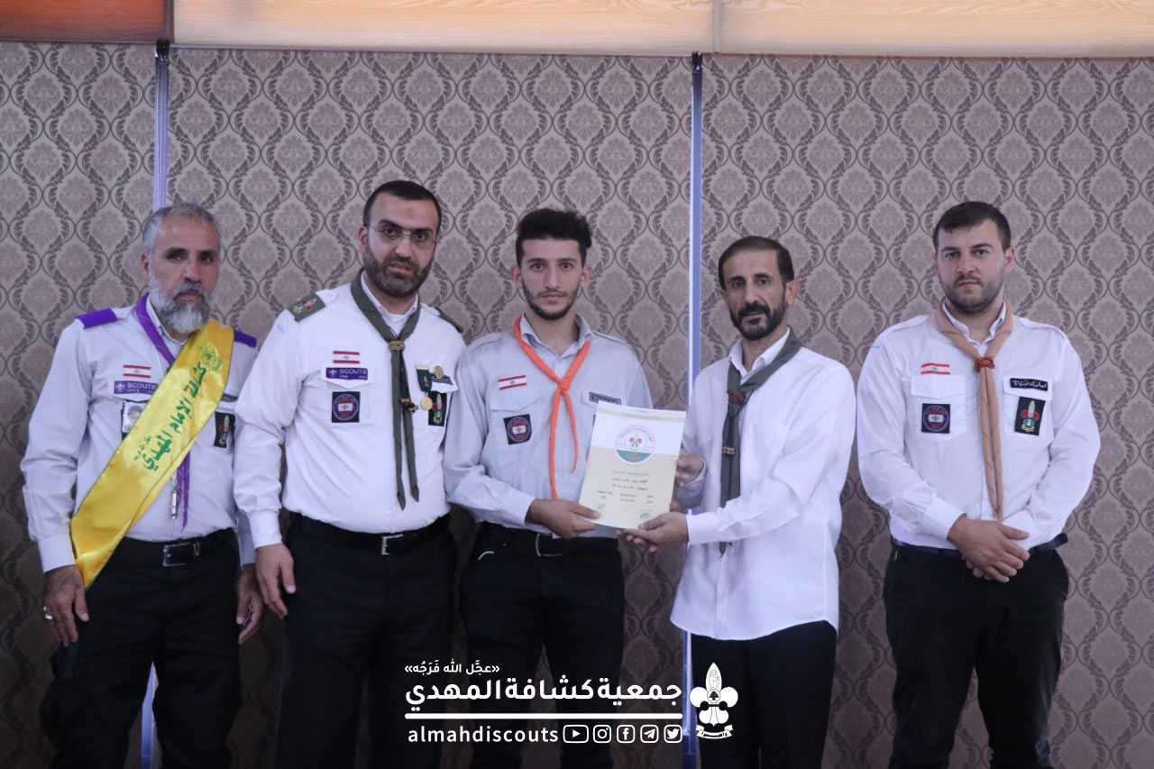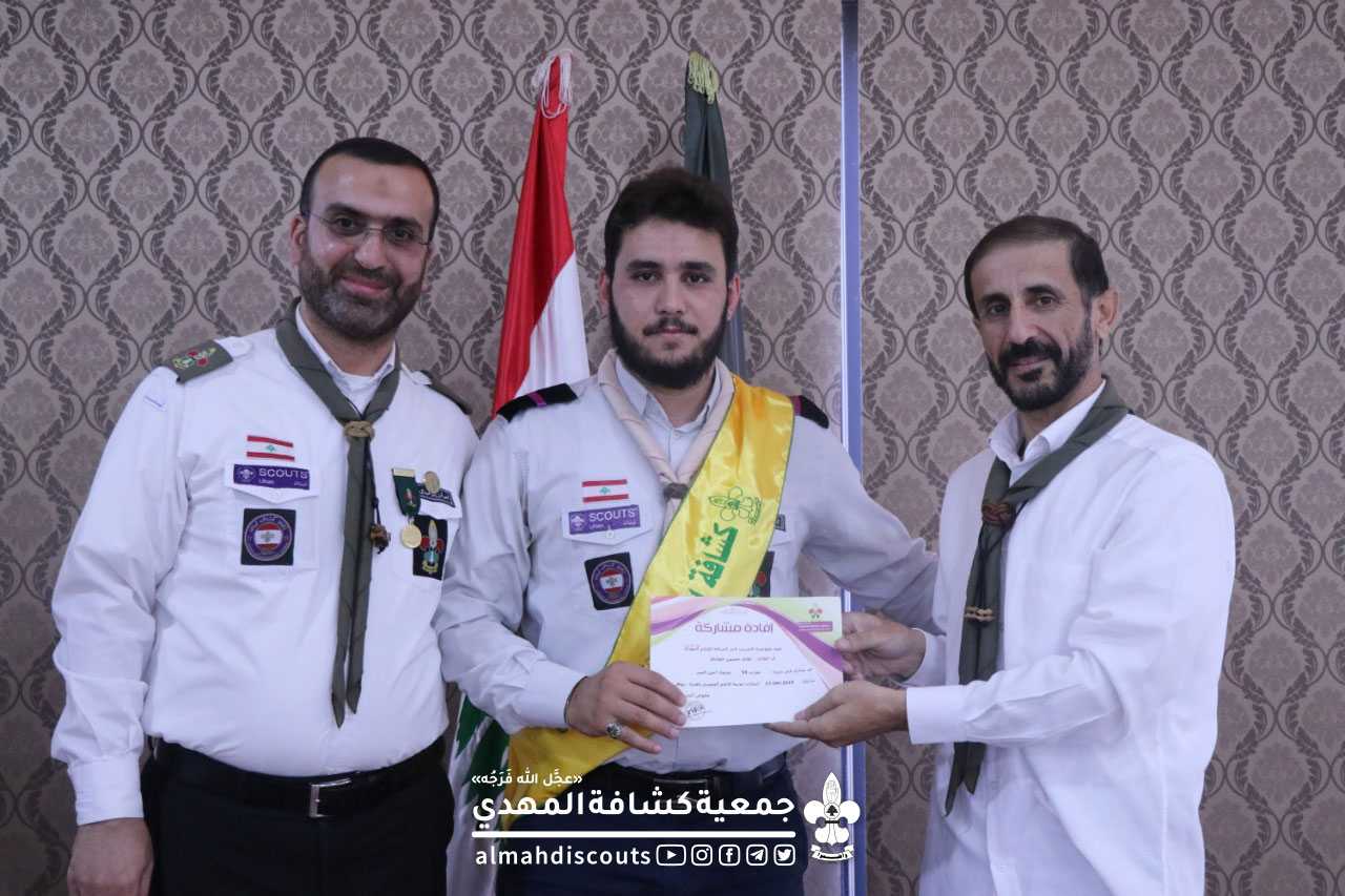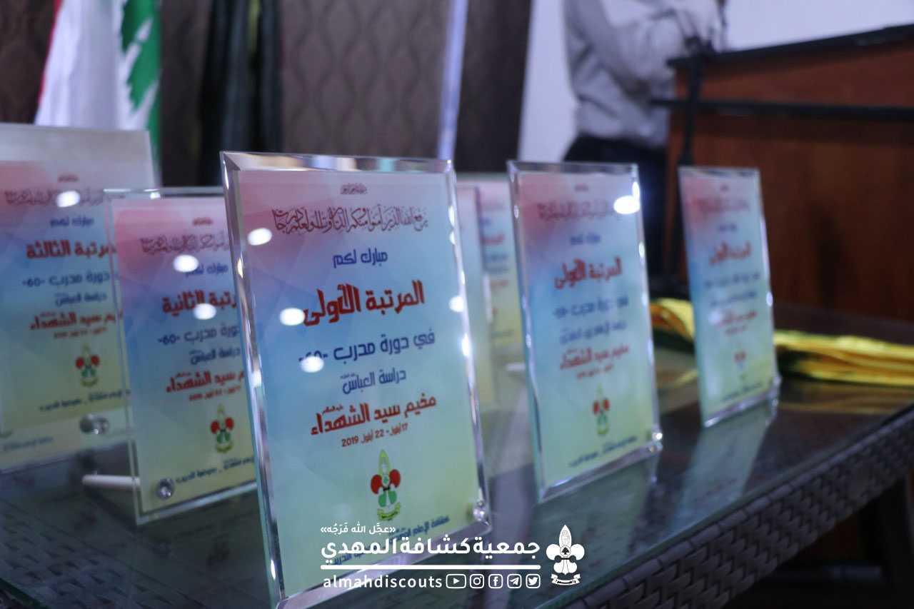 برعاية وحضور معاون رئيس جمعية كشافة الإمام المهدي (عجل الله فرجه) القائد الشيخ محمد سعد اختتمت مفوضية التدريب دورات مخيم سيد الشهداء التدريبية والتي تنوعت دراساتها بين مدرب وقائد تدريب بمشاركة ٦٢ متدرباً، حفل الإختتام الذي حضره مفوض التدريب القائد محمد أخضر وقادة الدراسات والمتدربين والذي أقيم اليوم افتتح بالقرآن الكريم والنشيدين تلاهما كلمة المتدربين التي شكروا فيها القيّمين على الدورة واعدين بمتابعة العمل الدؤوب لخدمة هذه الجمعية، ثم عُرض تقرير إعلامي من إعداد وكالة مهدي لخّص أبرز مراحل الدورات، وفي كلمته التي تلت التقرير أكد راعي الحفل على أهمية التدريب والإهتمام بالمشاركة في قيادة الدورات مشدداً على أهمية الإخلاص في العمل واستكمال المسار الصحيح الذي يساهم في تربية الأجيال، ليختتم الحفل بتكريم القيادات المشاركة وتوزيع الشهادات والدروع على على الأوائل وسائر المتدربين.
