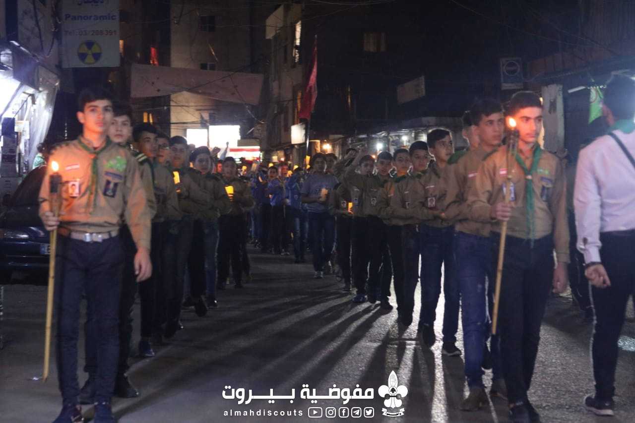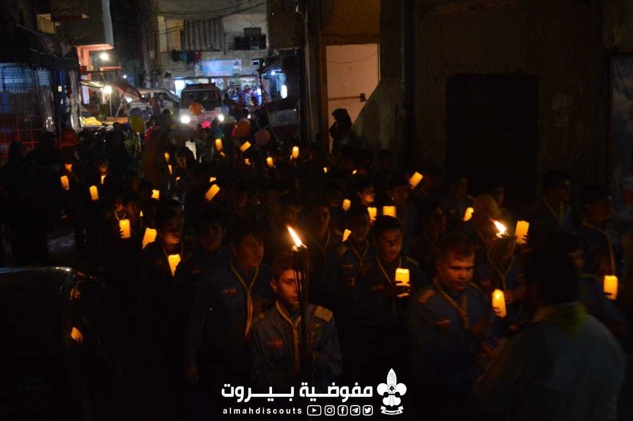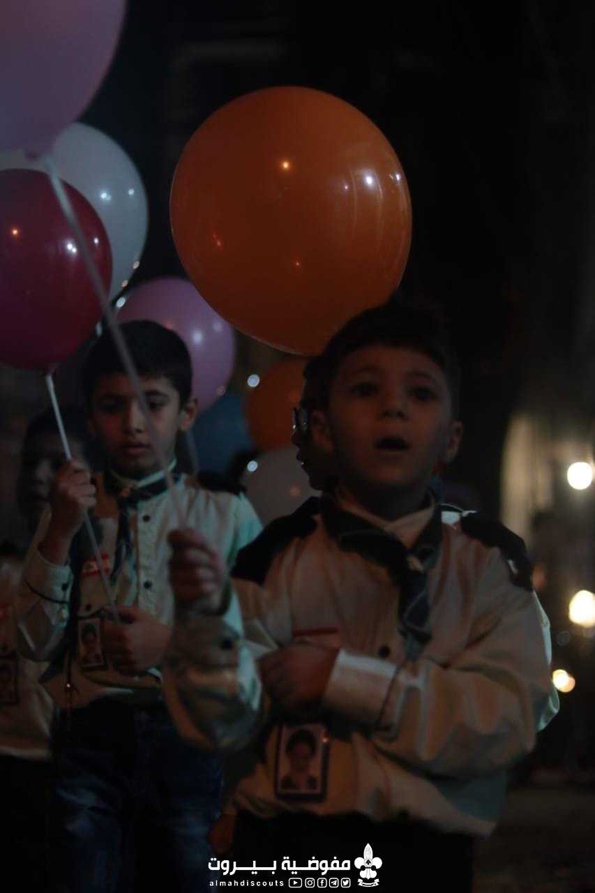 في ذكرى ولادة الرسول الاكرم محمد (ص) اقام فوج علي الاكبر(رض) في القطاع الاول مسيرة بعنوان: الحب محمد(ص) بمشاركة 205 كشفي