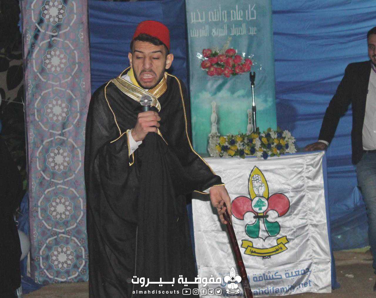 أُشعلت النار بالمراسم الكشفية وتخللت تواشيح ومولد من وحي المناسبة وأربع سكتشات تمثيلية منها الفكاهي وتم تمثيل سكتش المزهرية الخالية واختتمت السهرة بدعاء الحجة (عج)