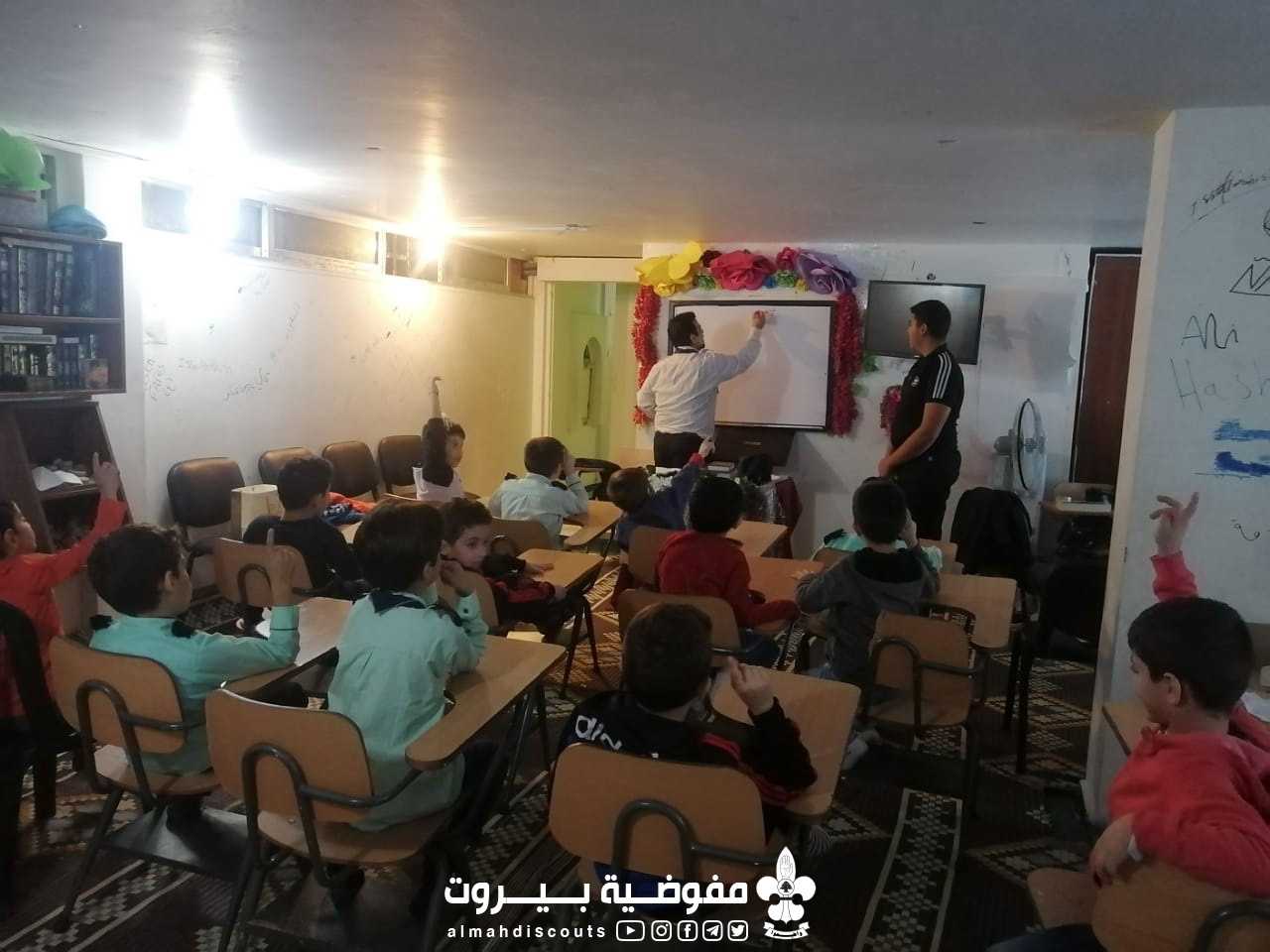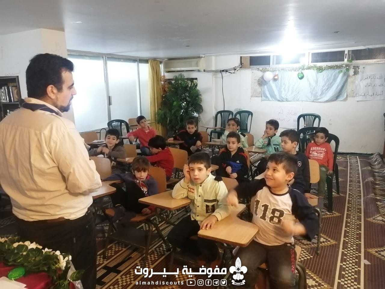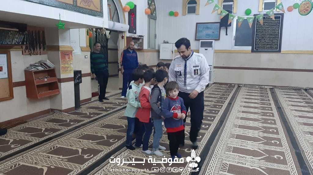 اقامت فرقة البراعم في فوج الامام الهادي (ع) - القطاع الخامس نشاطها الاسبوعي في مسجد الناصر تحت عنوان "احبك وطني" وحقق من خلاله العناصر المطالب رقم ٣٠، ٣١، ٦١ بحضور ١٣ كشفي وقائدين.