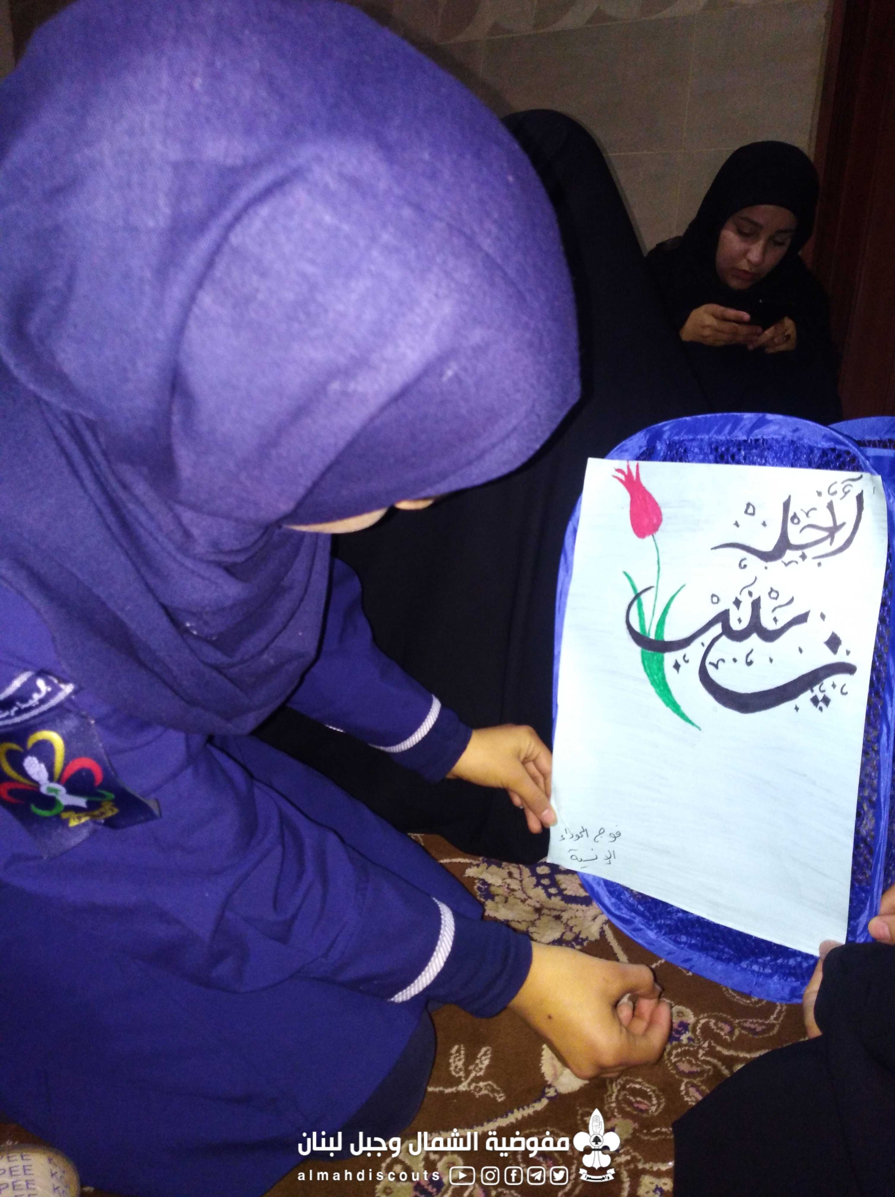 شعار أطلقته مفوضية الشمال وجبل لبنان تناسباً مع ذكرى ولادة الحوراء (ع) وبهذه المناسبة كان لفوج الحوراء الانسية (القطاع الثالث، الشمال) نصيباً في نشر الفرحة فقام عدد من الدليلات بوضع سلل مشتريات في المحال التجارية لمساعدة الفقراء ترسيخاَ للقيم الحميدة وتحلياَ بأخلاق أهل البيت عليهم السلام، وكل عام وأنتم بألف خير.