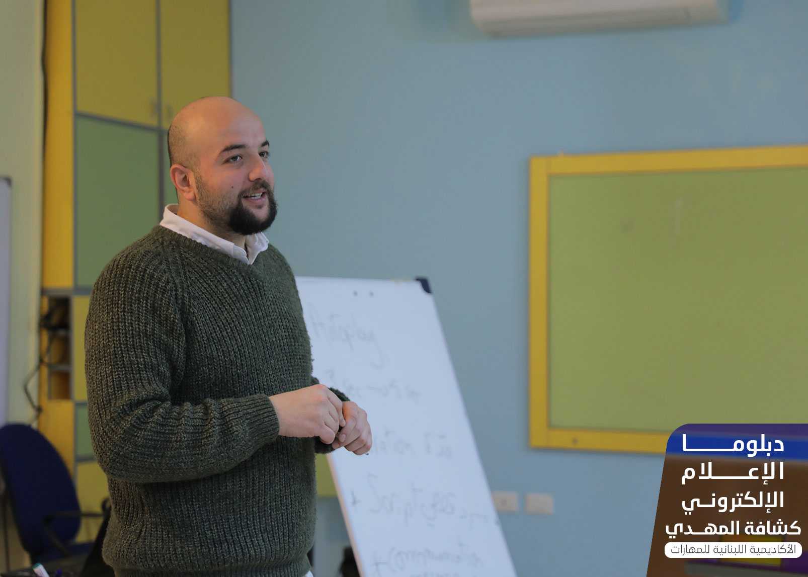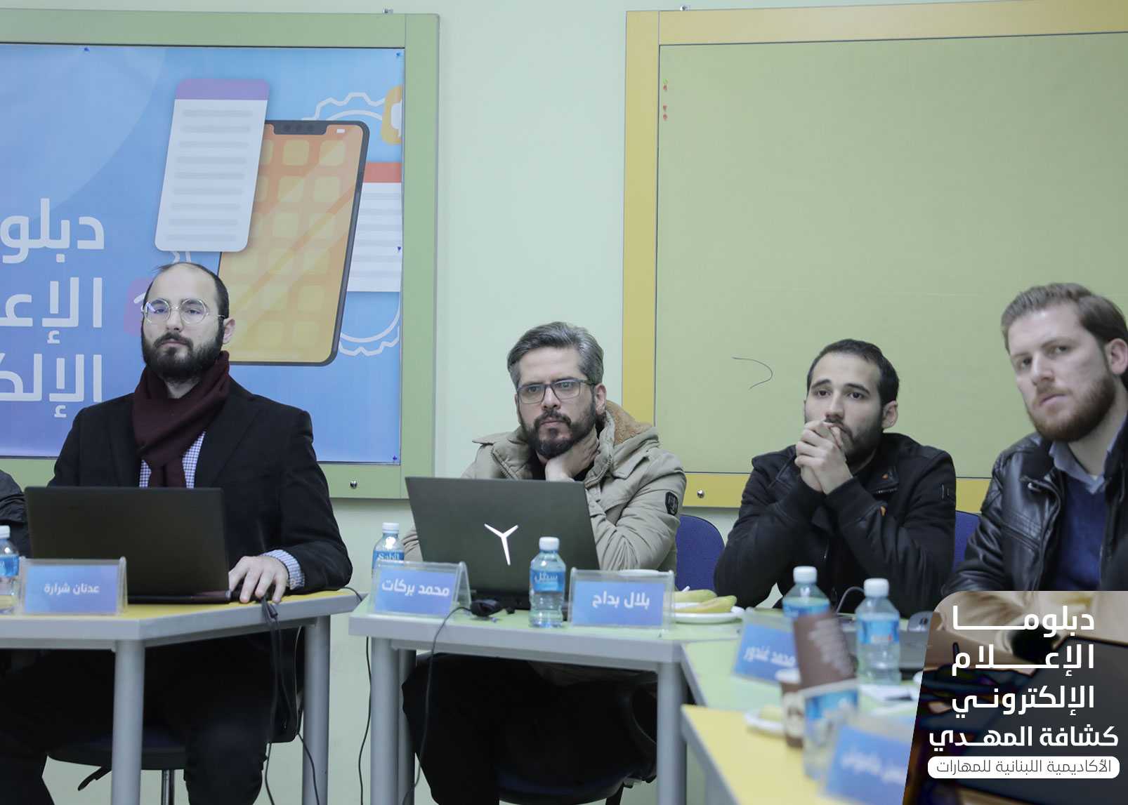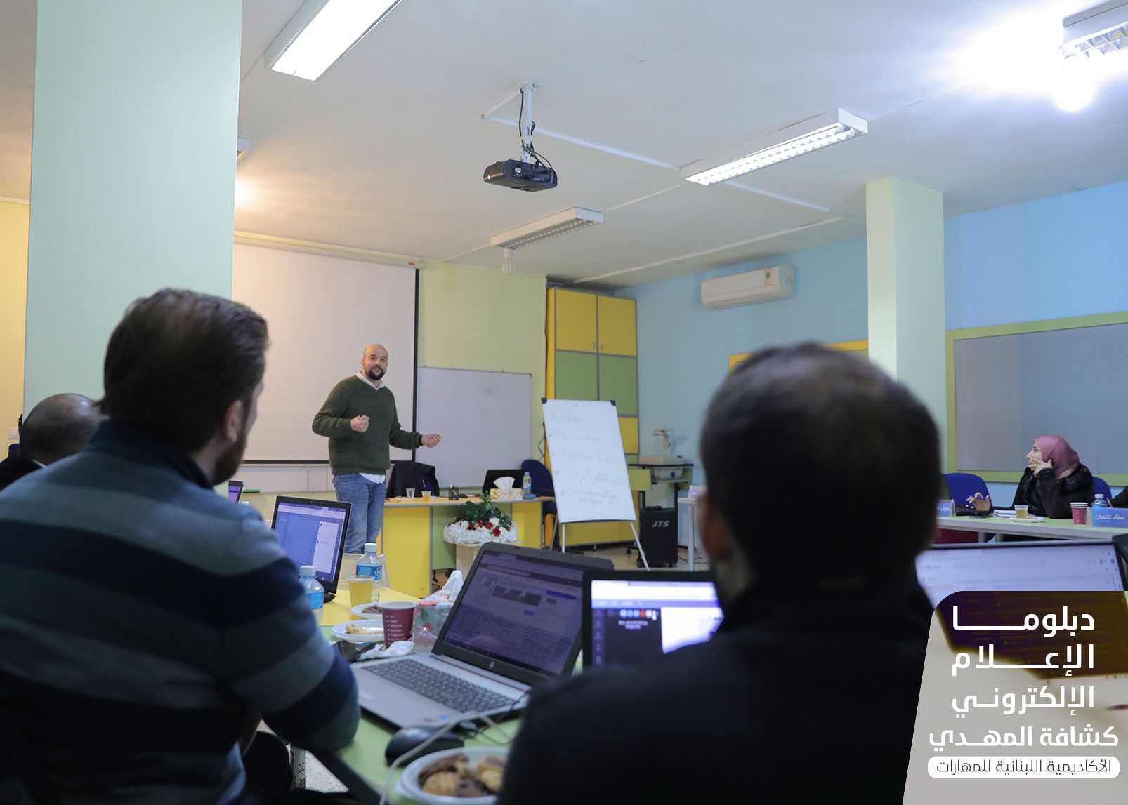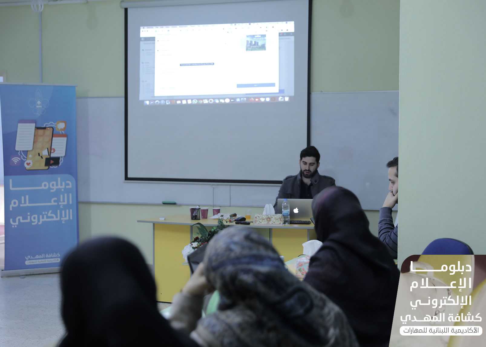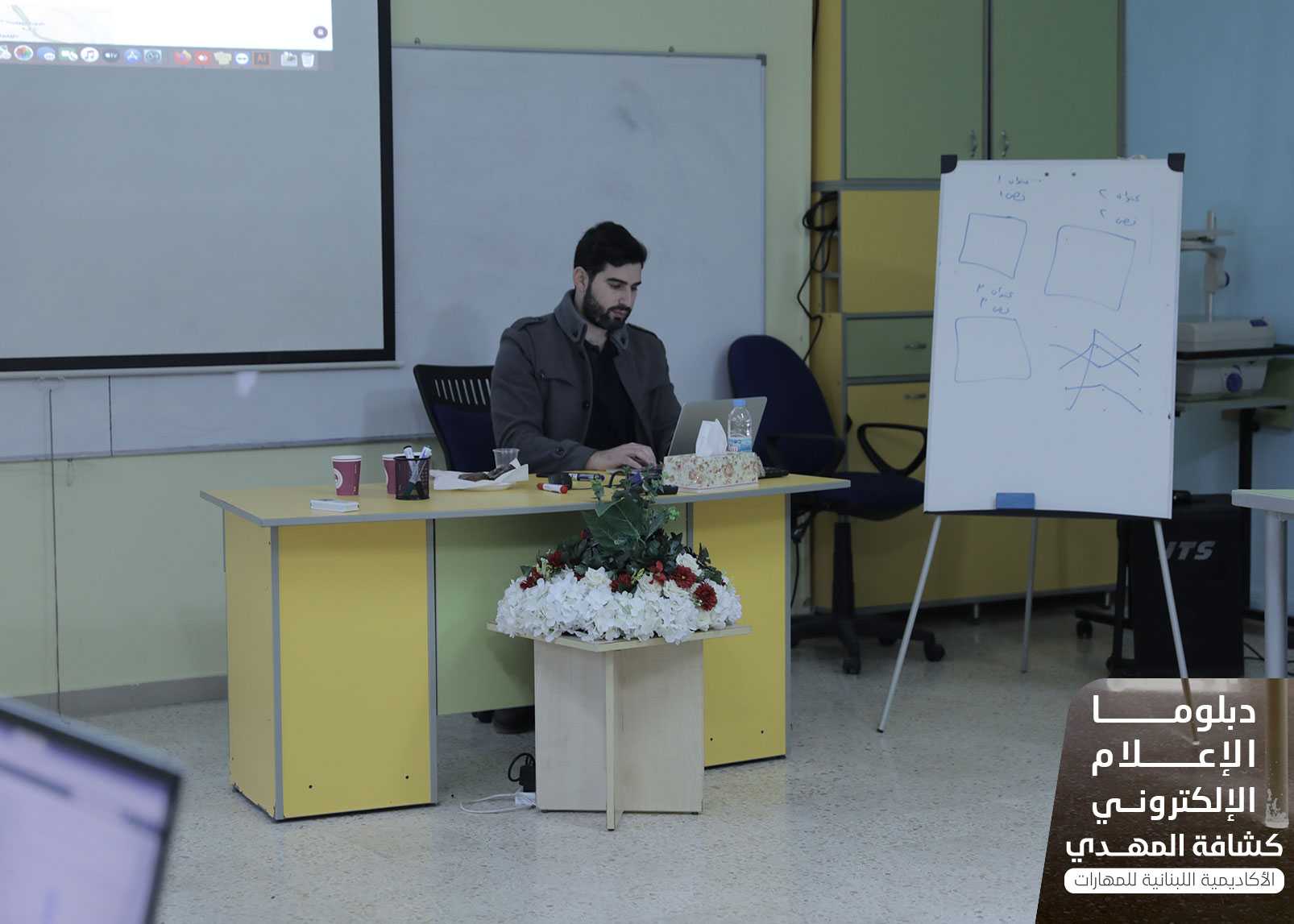 بدأ الأسبوع مع الأستاذ علي زين الذي استكمل مادة احتراف إدارة منصة الفايسبوك وحسابات الترويج المدفوع باحترافية. ليُكمل الأستاذ خضر سلامة يوم الثلاثاء مادة إعداد المحتوى الرقمي وال Script Writing.