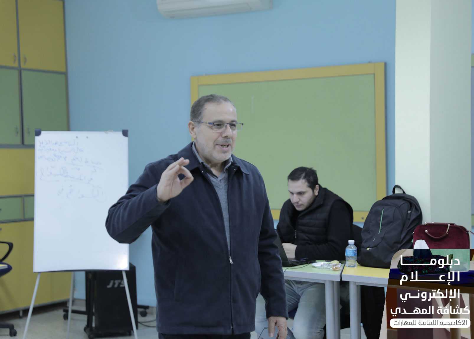 المتدربون اليوم كانوا مع موعدٍ مع مادة اللغة العربية وأسس الكتابة السليمة، والتي قدَّمها الدكتور خليل بيضون على مدى ستة حصص متتالية ضمن جوٍ من التفاعل والحيوية.