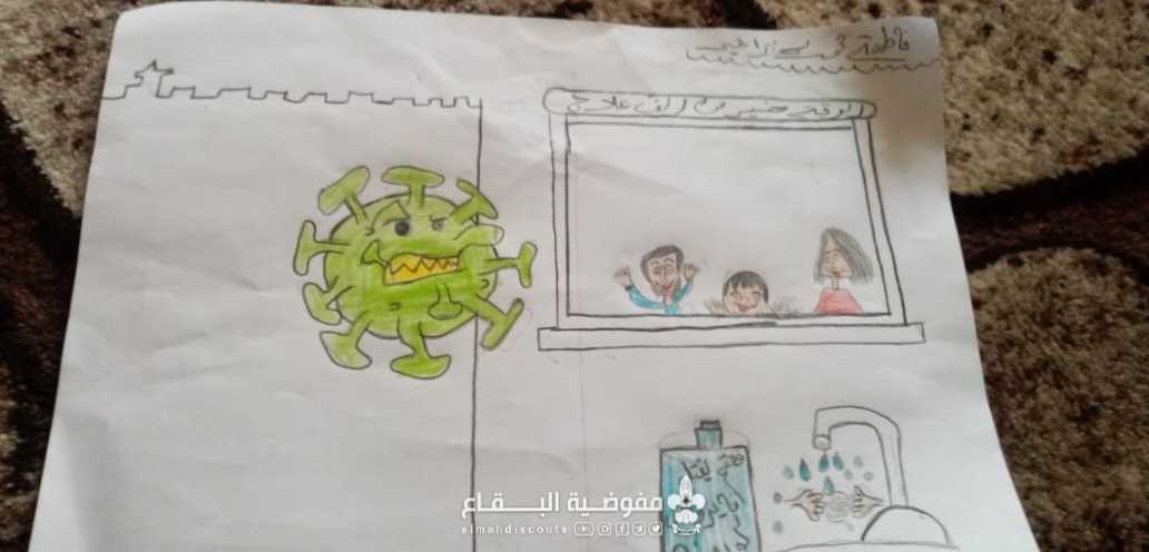 رسمت كشفيات فوج السيدة ام البنين/ النبي عثمان/ القطاع الشمالي رسومات تعبيرية تتمحور حول المرض الجديد "الكورونا" عبرنا خلالها عن طرق الوقاية من هذا الخطر وارسلنها للقائدة عبر الهاتف كتعبير عن مقامتهن لهذا الوباء
