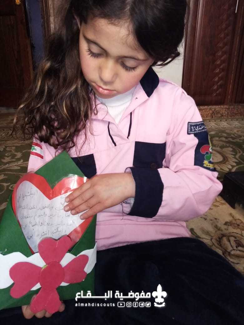في عيد الأم وبالرغم من قلة الانشطة الأسبوعية، إلا أن كشفيات فوج السيدة خديجة/ المرح الشمالي/ قطاع الهرمل صنعن بطاقات معايدة بالتعاون مع القائدات عبر التواصل الالكتروني وقدمنها لأمهاتهن عربون محبة
