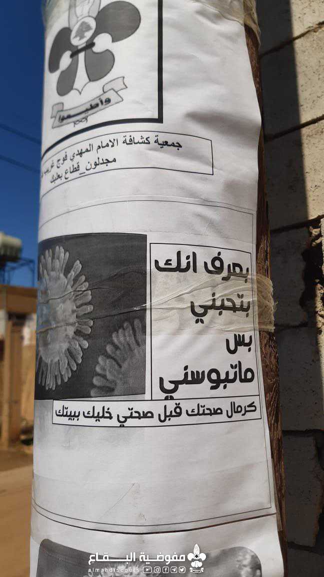 _تعليق إعلانات توعية في شوارع البلدة عن خطورة الوضع وعن خطورة الخروج من المنازل
