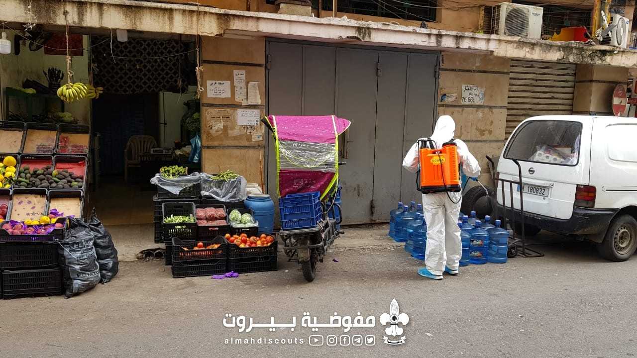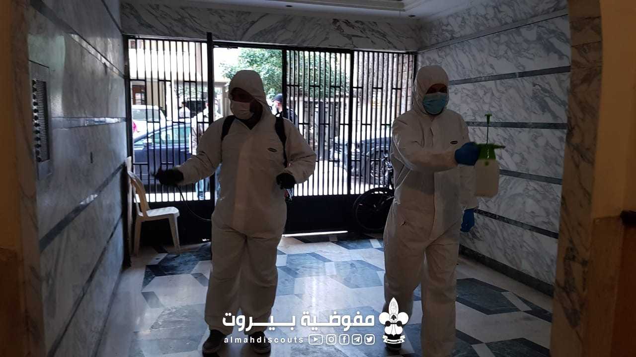 اقام قطاع السادس في مفوضية بيروت بالتعاون مع الهيئة الصحية الاسلامية بتعقيم المباني و المداخل في منطقة رأس النبع بأدوية خاصة بمشاركة 9 قادة