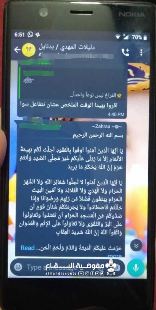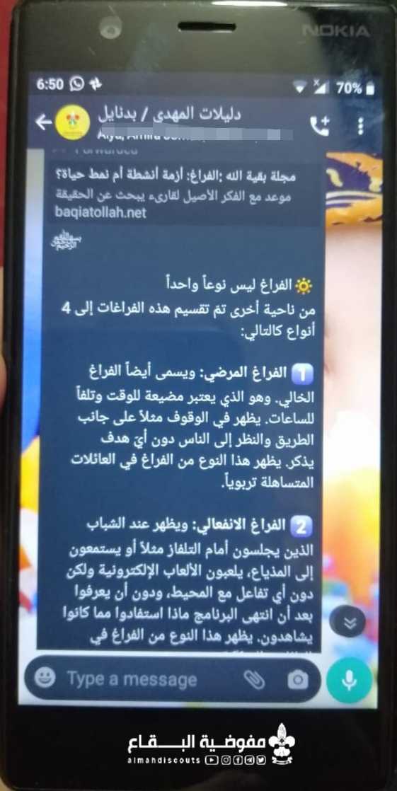 أقام فوج السيدة نرجس/ بدنايل/ القطاع الاوسط ورشتين إلكترونيتين لفرقة الدليلات بمشاركة ٩ دليلات وقائدتين تتمحوران حول "الفراغ في زمن الكورونا"، الاكتئاب وشهر شعبان كما واطلق مشروع شهر شعبان العبادي