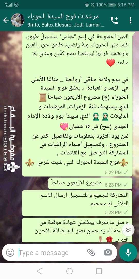 وتستمر افواج القطاع الشرقي بأنشطتها الالكترونية وفي اجواء ولادة أ_مة اهل البيت في الاول من شعبان تعددت الانشطة فكانت المسابقات الدينية والترفيهية كما في فوج السيدة مريم/ علي النهري واضاءة الشموع والاحتفال مع القائدات من خلف الشاشات كما في فوج الحوراء/ النبي شيث شرقي والذي تميز ايضاً باطلاق مشروع الأربعون صباحا لهذا العام