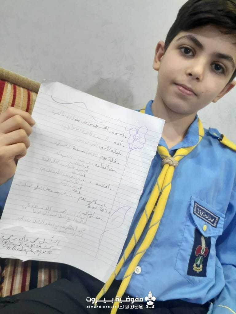 أقامت فرقة الأشبال في فوج الإمام الصادق (ع) في القطاع الخامس نشاطها الأسبوعي الالكتروني حول ولادة الإمام الحسين عليه السلام بمشاركة ٦ عناصر