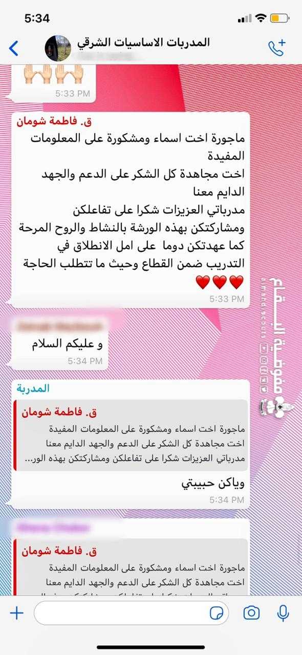 لتنطلق المدربات فيما بعد لتطبيق ورشهنّ في التدريب في الأفواج والقطاعات وحيث يجب أن نكون.