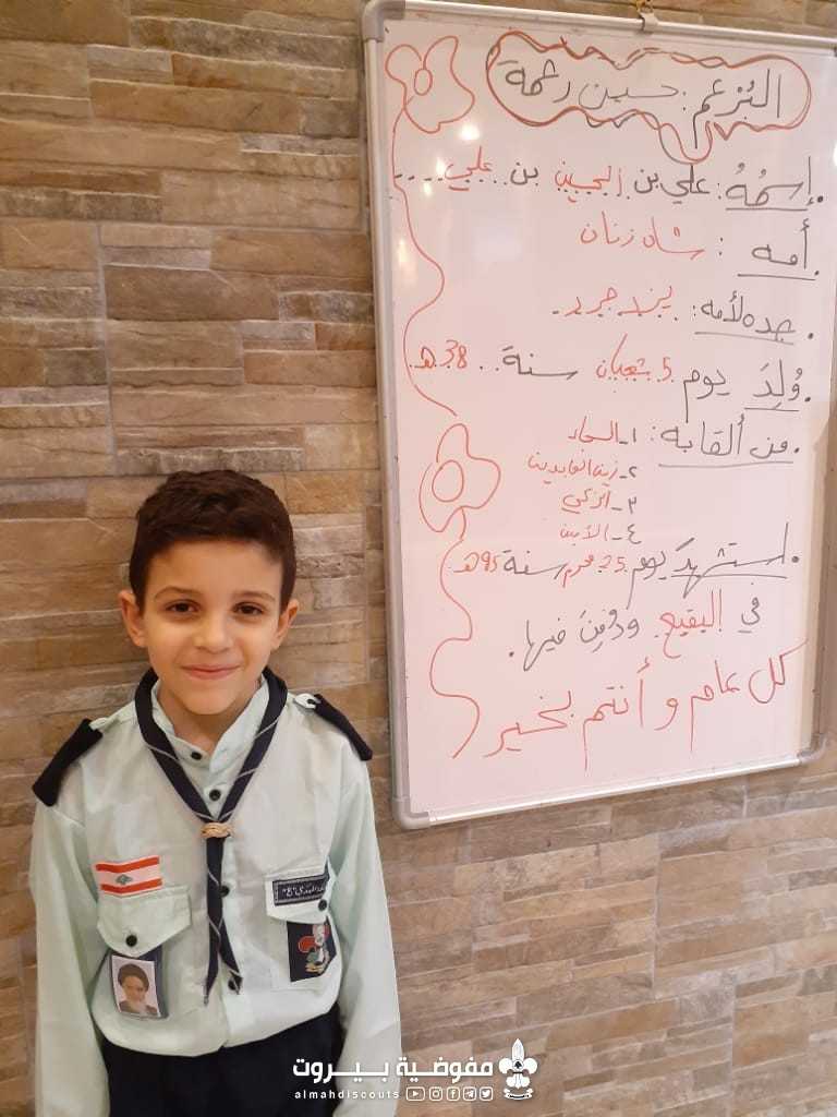 أقامة فرقة البراعم في فوج الإمام الصادق (ع) في القطاع الخامس نشاطها الإلكتروني بمناسبة ولادة الأقمار الثلاثة بمشاركة 5 عناصر