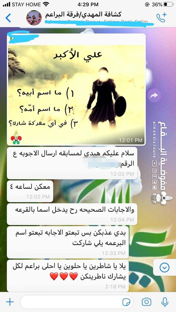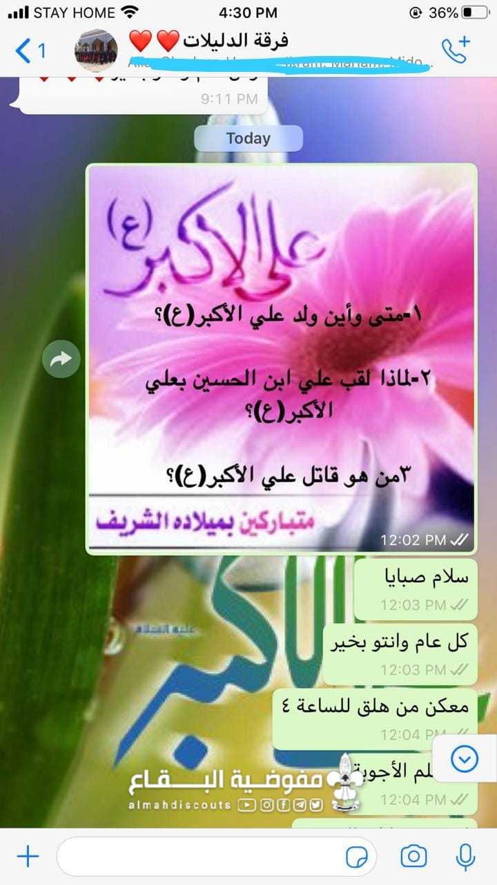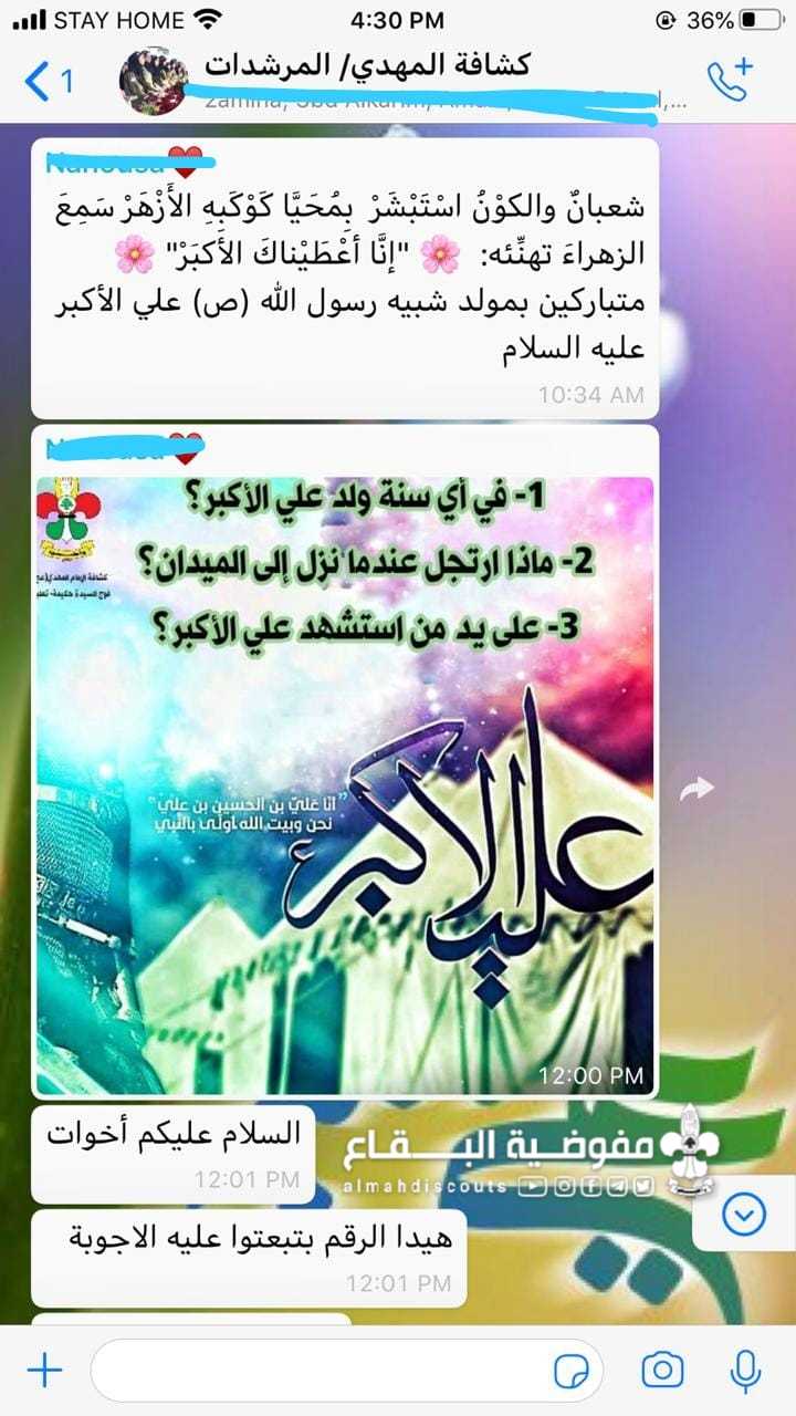 بمناسبة ولادة علي الاكبر عليه السلام اقام فوج السيدة حكيمة/ تعلبايا/ القطاع الاوسط مسابقة الكترونية من وحي المناسبة وتم سحب القرعة للفائزات