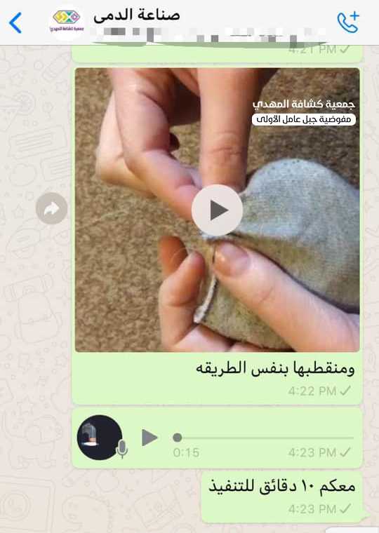 شاركت 61 دليلة من قطاع الحجير بورشة \"صناعة الدمى\" التي نفذها القطاع عبر تطبيق الواتسآب.