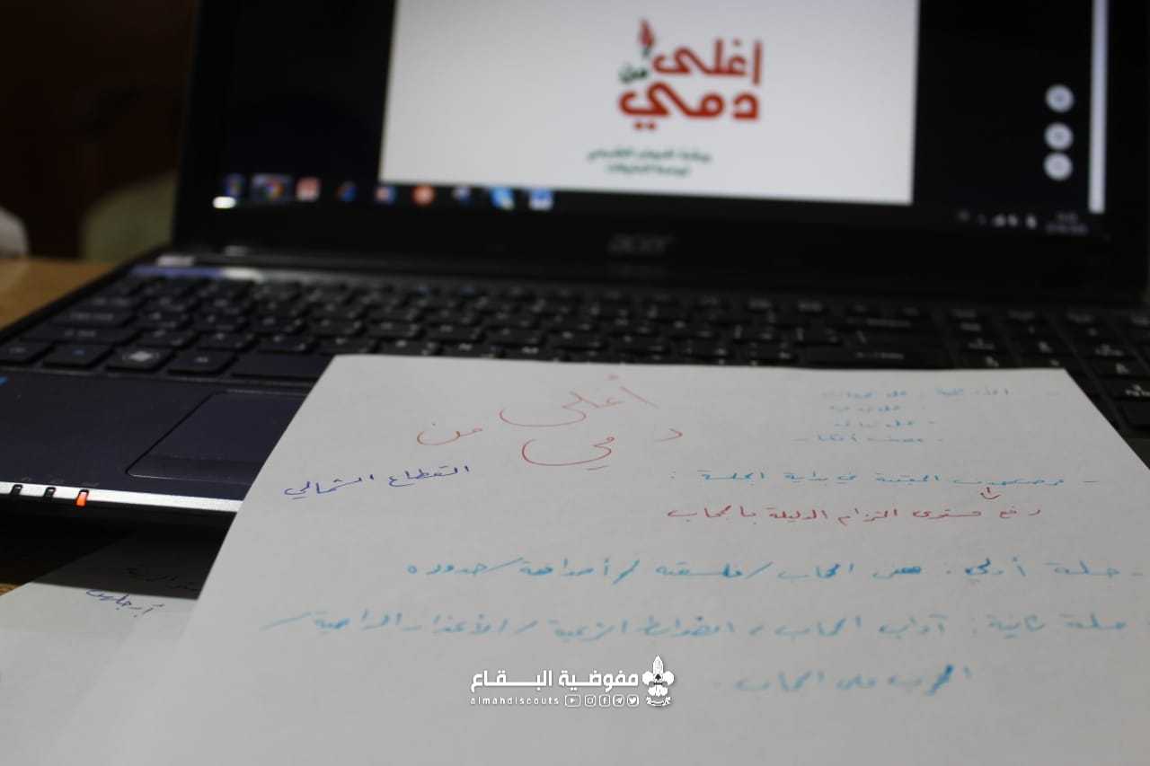 لأن الشعار "حجابك أغلى من دمي" ولأن الحياء والعفة من صفات الفتات المسلمة أقام القطاع الشمالي ورشة إلكترونية بعنوان "أغلى من دمي" بمشاركة 23 دليلة من فوجي بطلة كربلاء/ العين والمعصومة/ حربتا... قدمت الورشة المدربة غنى شكر بأسلوبها الجذاب رغم كون النشاط من خلف شاشات الهواتف، وقد ابدت الكشفيات تفاعل مميز ومشاركةً فعّالة...