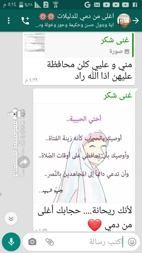 لأن الشعار \"حجابك أغلى من دمي\" ولأن الحياء والعفة من صفات الفتات المسلمة أقام القطاع الشمالي ورشة إلكترونية بعنوان \"أغلى من دمي\" بمشاركة 23 دليلة من فوجي بطلة كربلاء/ العين والمعصومة/ حربتا... قدمت الورشة المدربة غنى شكر بأسلوبها الجذاب رغم كون النشاط من خلف شاشات الهواتف، وقد ابدت الكشفيات تفاعل مميز ومشاركةً فعّالة...