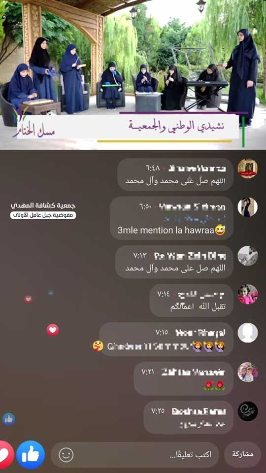 ختتاما للأنشطة الصيفية الخاصة بالأخوات وفي أجواء عيد الإنتصار أقامت مفوضية جبل عامل_ لأولى عصرونية الكترونية حملت اسم \"مسك الختام\".