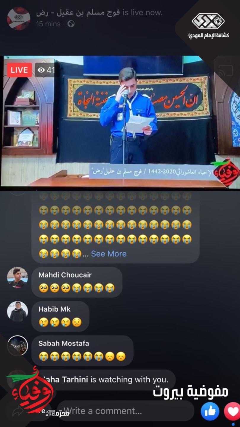 لأنها مدرسة الاجيال تستمر أفواج مفوضية بيروت لليوم الثاني من محرم، إحياء مجالس الاطفال والناشئة عبر ٣٤١ إحياء الكتروني وبمشاركة فاعلة من ٦٠١٦ كشفي وفرد من العموم، الانشطة العاشورائية الجاذبة نفذت على مجموعات الواتساب بالاضافة الى تطبيقات اخرى( زووم - فايسبوك - غوغل مييت ) وسط تفاعل مميز واستجابة عاشورائية من العشاق.