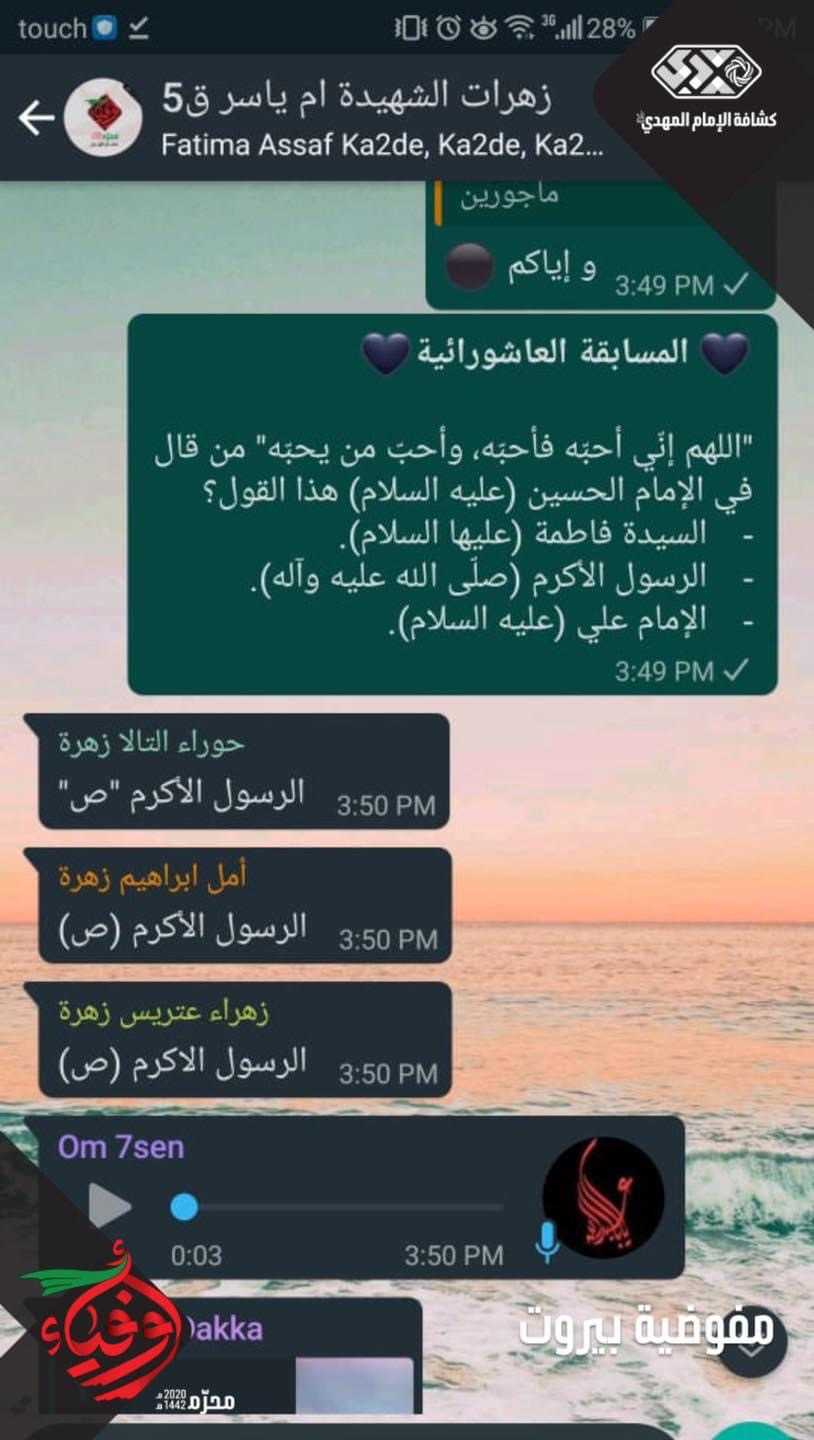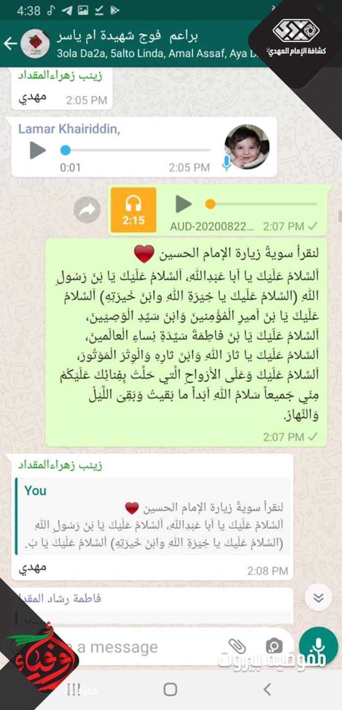تحت شعار أوفياء وبنداء لبيك يا حسين؛ أحيت أفواج مفوضية بيروت اليوم الأول من محرم، مجالس الاطفال والناشئة عبر ٣٥٩ إحياء الكتروني حيث تفاعل ٥٥٨٤ من الكشفيين وعموم الاطفال والناشئة وتضمنت الإحياءات فقرات فنية متنوعة من أداء الكشفيين وتميزت الأنشطة على مجموعات الواتساب بمشاركات الافراد.