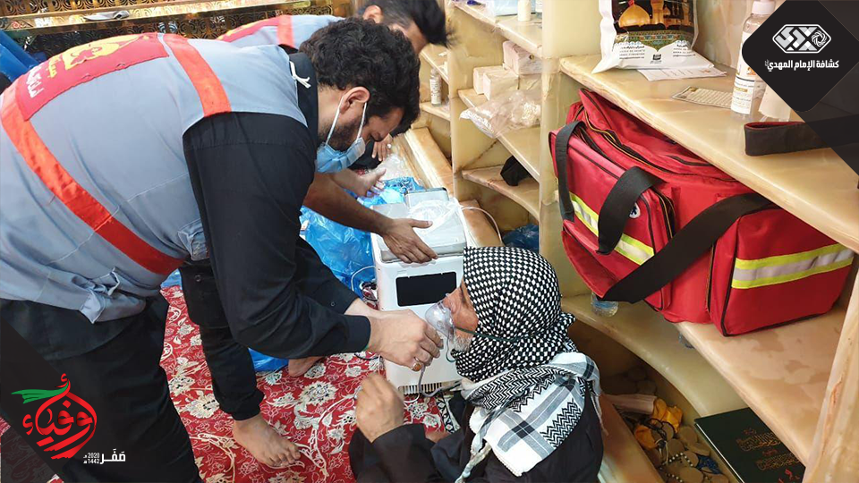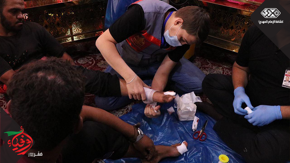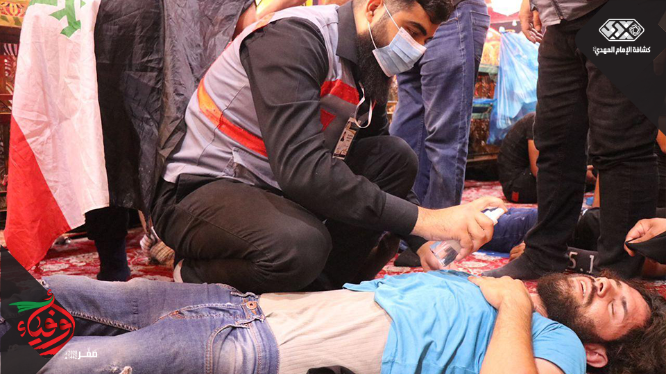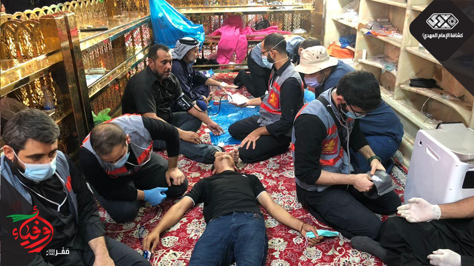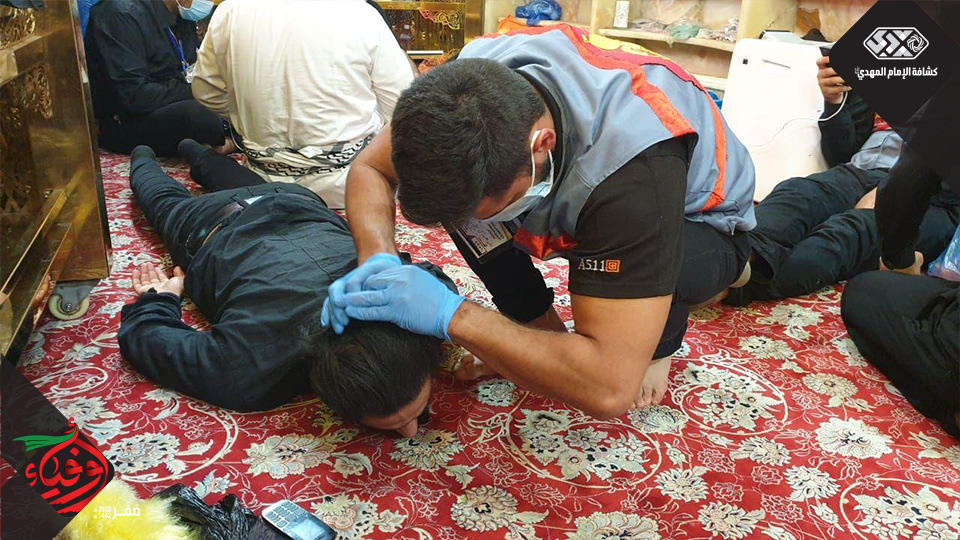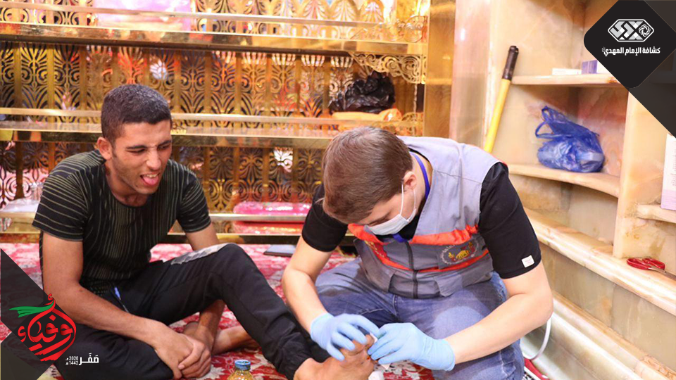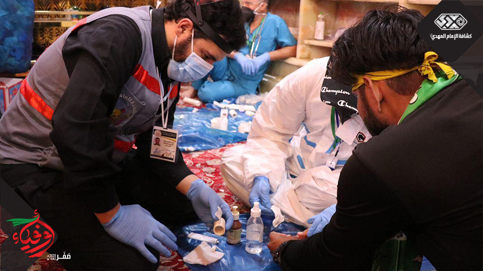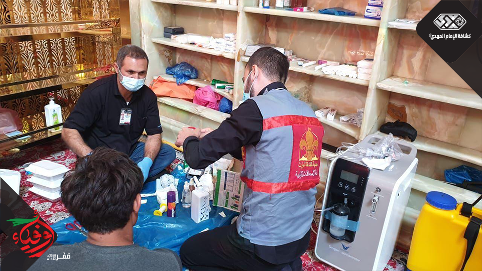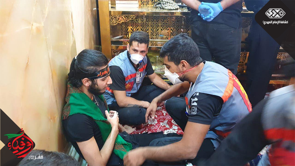 الوفد استكمل مهامه داخل المقام الشريف للإمام الحسين (عليه السلام) قرب باب الرأس الشريف حيث قام أفراد الوفد بمداواة وعلاج زوار الإمام الحسين (عليه السلام) في الأربعينية، مع الالتزام بالإجراءات الوقائية الخاصة بفايروس كورونا.