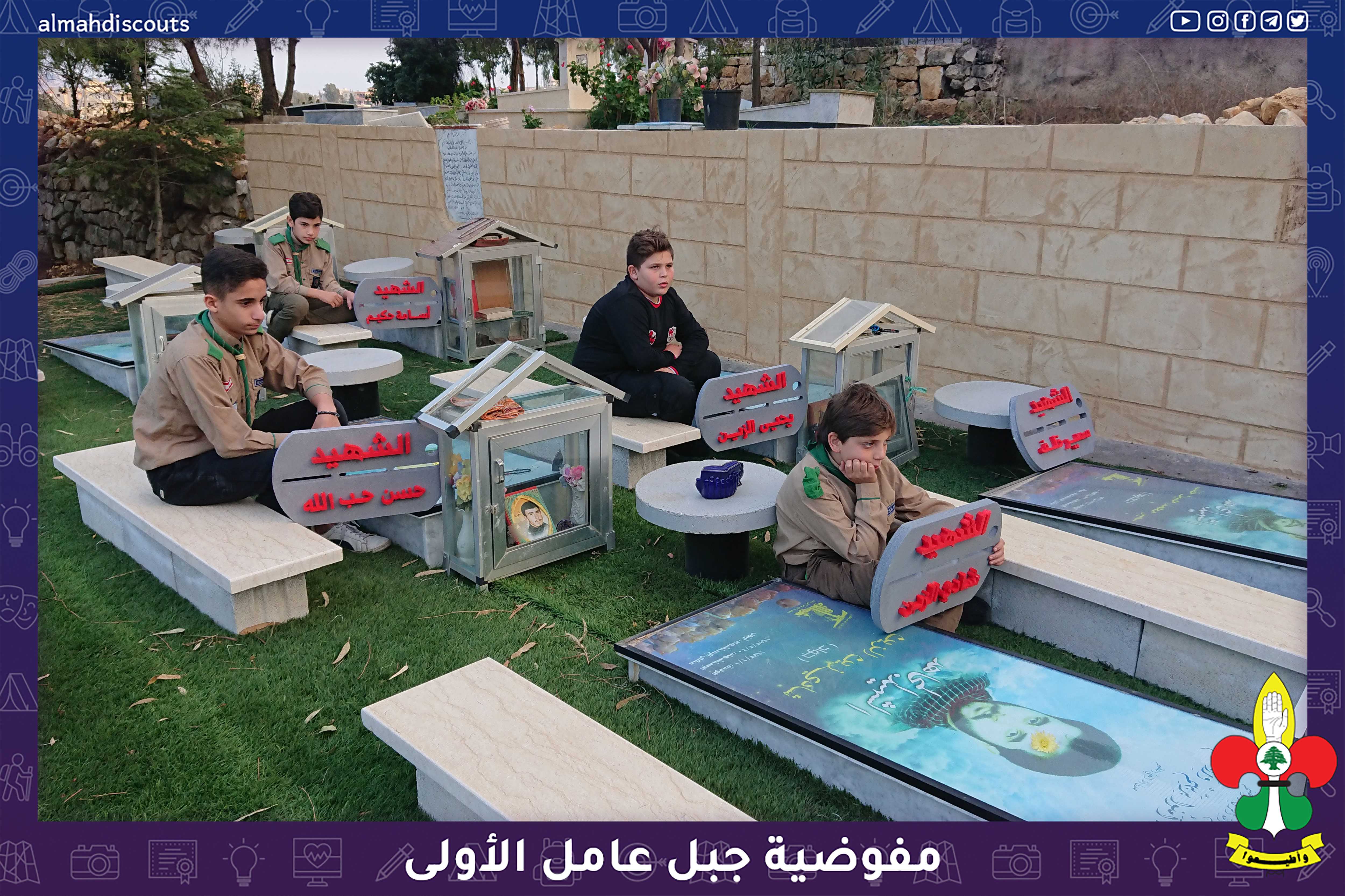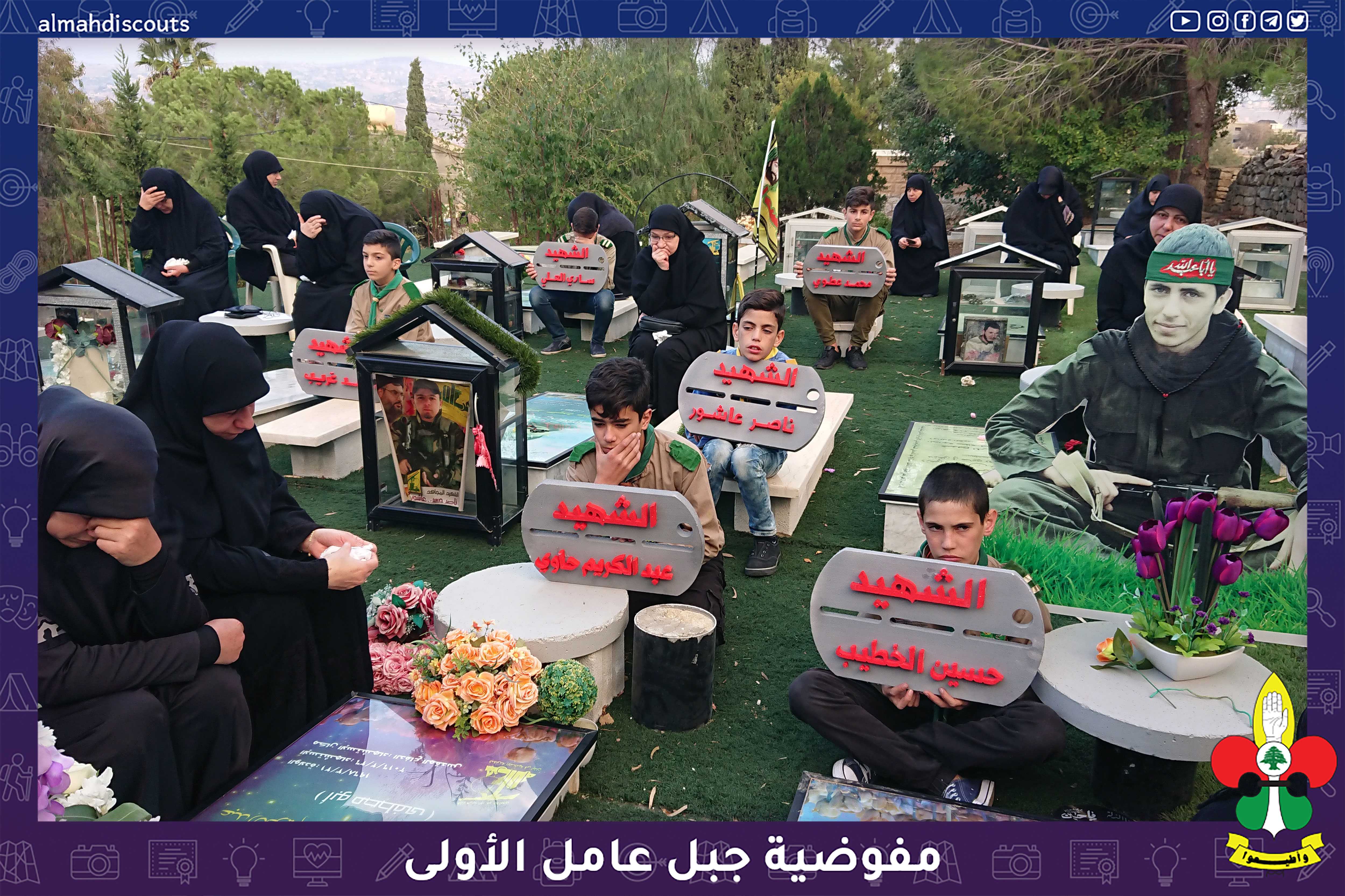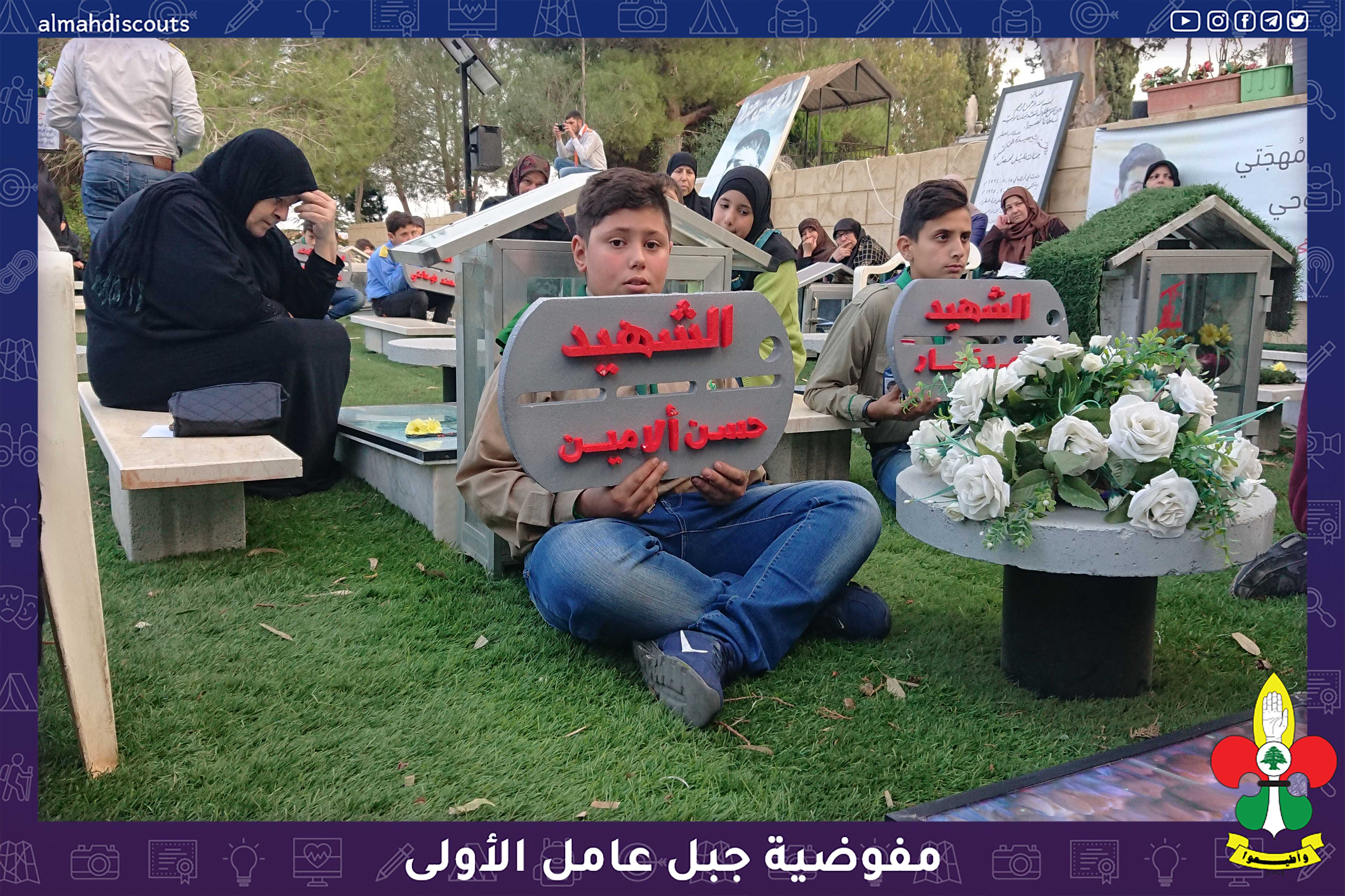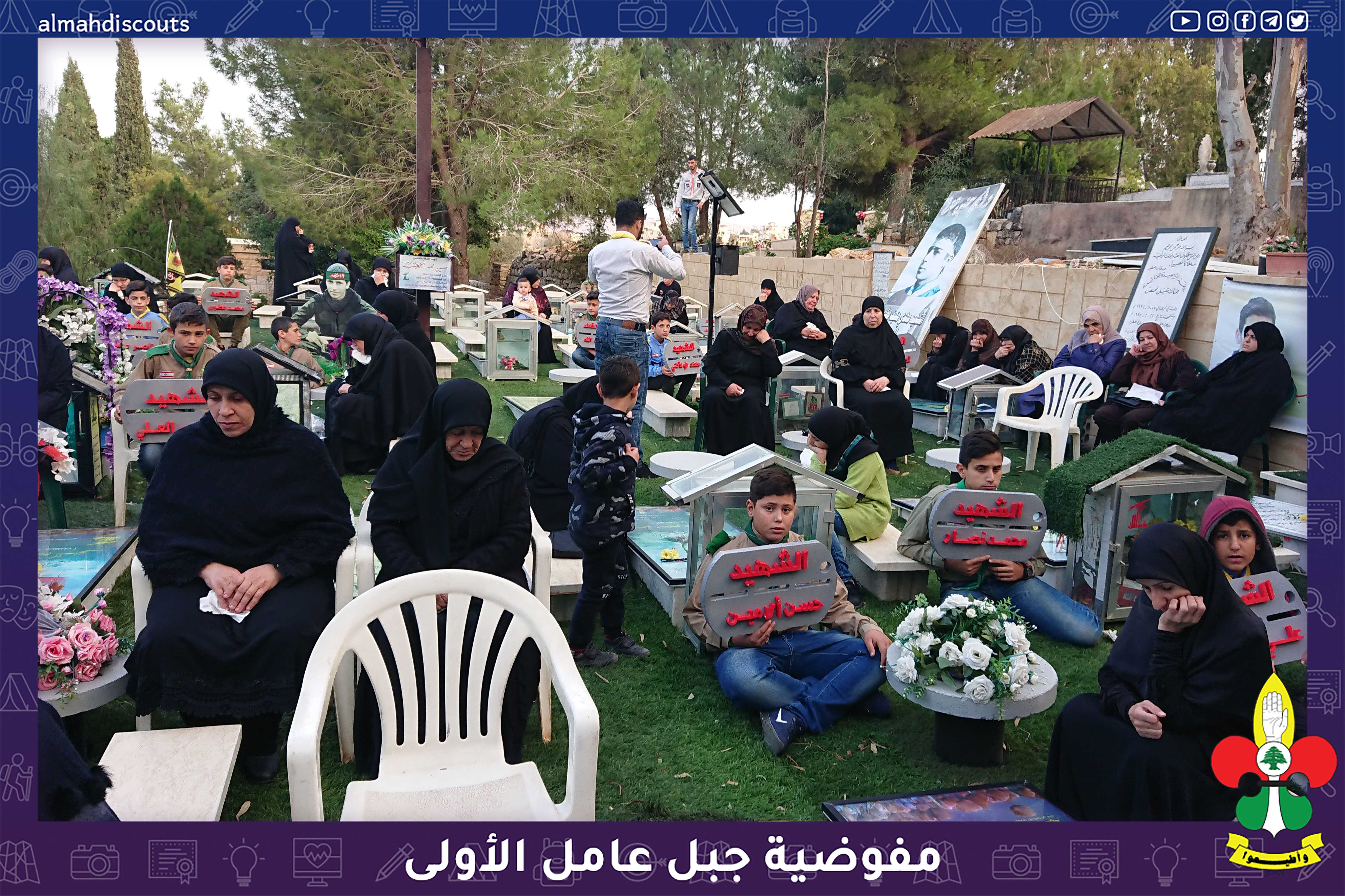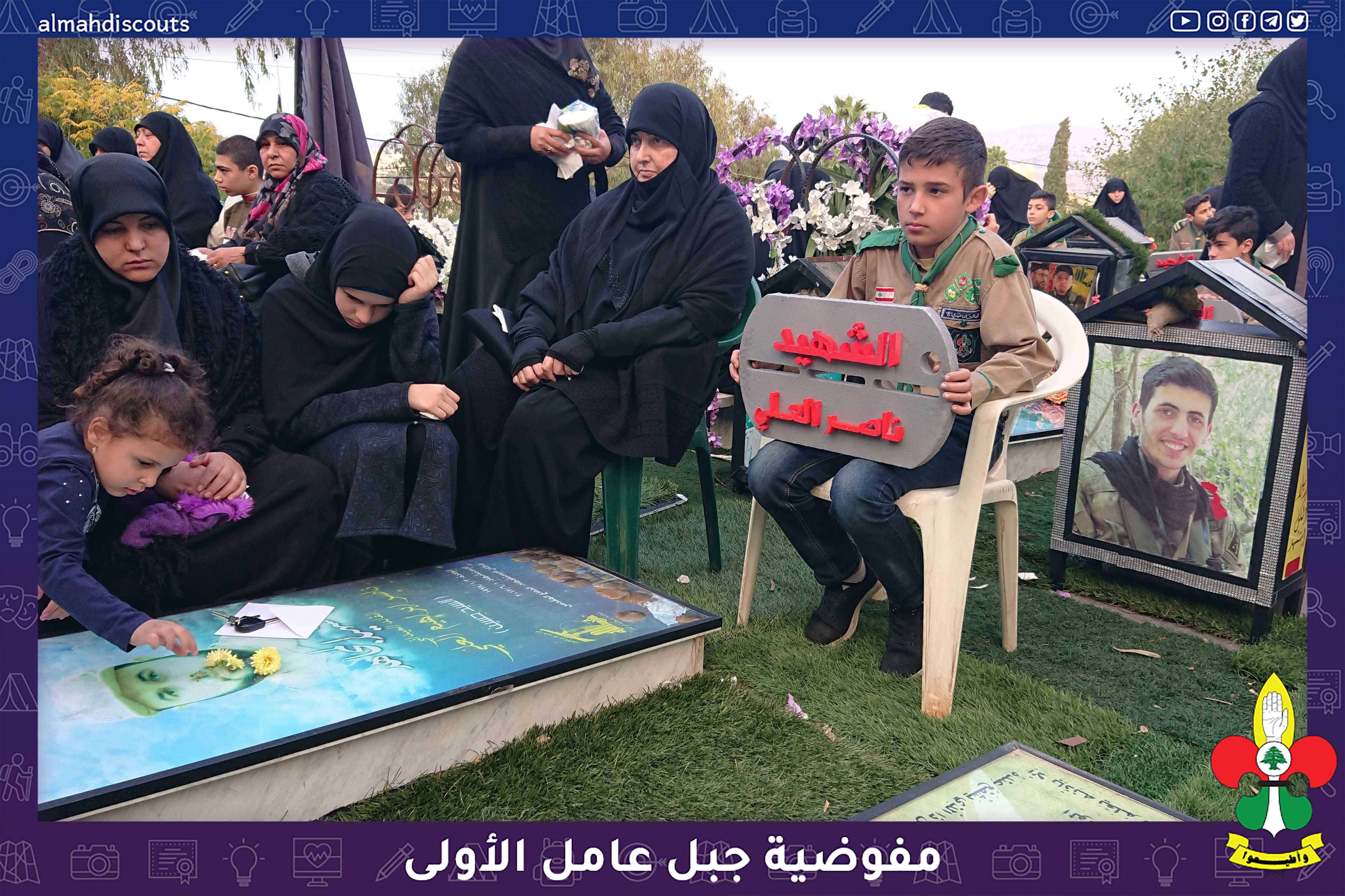 شارك عناصر من فرقتي الكشافةوالاشبال في احياء ذكرى وفاة الرسول (ص) ويوم الشهيد بمجلس عزاء حسيني في روضة الشهداء حيث حمل العناصر قلادات من فلين تحمل أسماء شهداء البلدة.