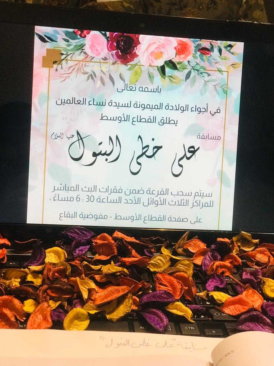 في اجواء ولادة السيدة الزهراء عليها السلام، اقام القطاع الاوسط مسابقة هاتفية لقائداته بعنوان "على خطى البتول" و سيتم سحب القرعة في سهرة خاصة ضمن بث مباشر في اجواء الولادة المباركة.