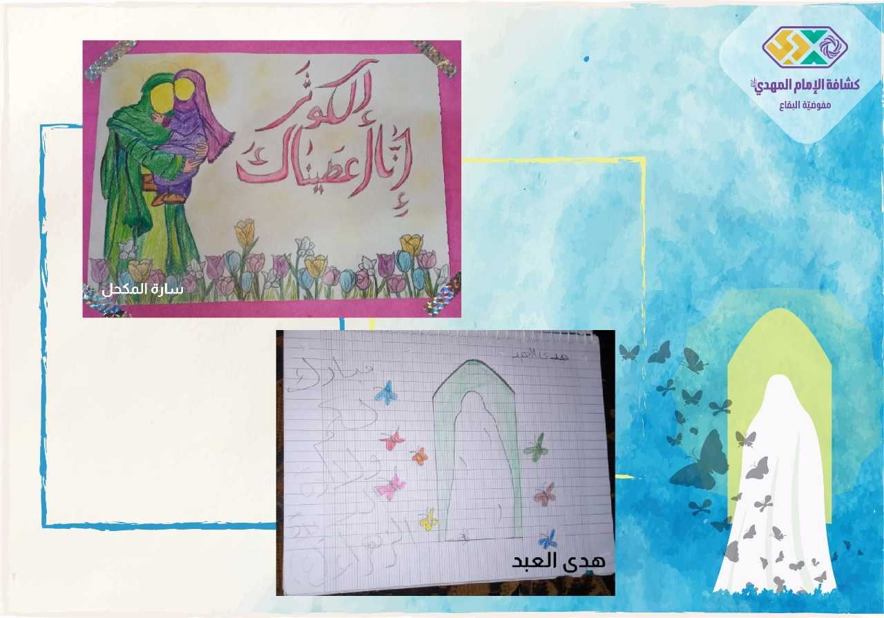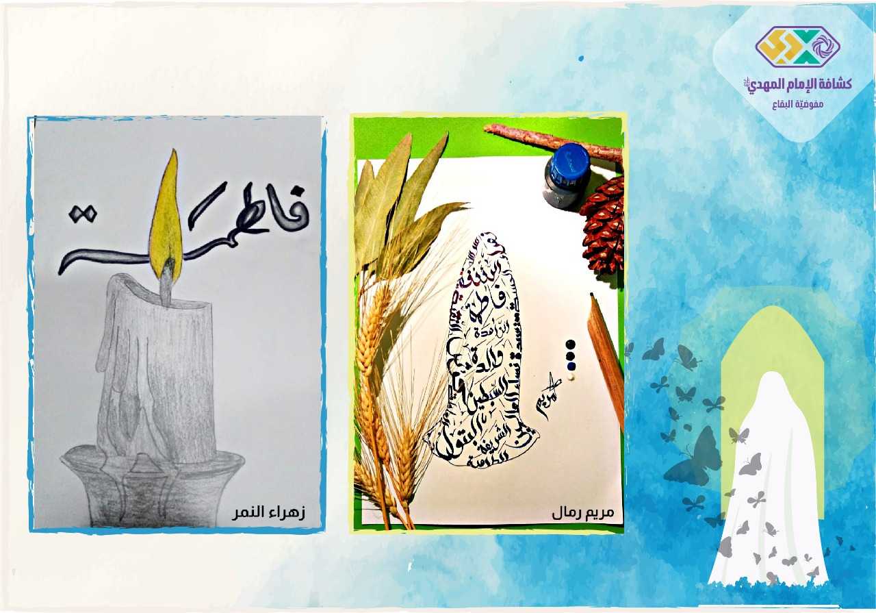 في اجواء ولادة السيدة الزهراء عليها السلام نظمت مفوضية مرشدات البقاع مرسم بعنوان "فاطمة" عليها السلام، بمشاركة 18 لوحة مميزة رُسمت بأنامل لطالما احبت السيدة فاطمة عليها السلام، وقد كان الفوز بعد وضع النتائج من قبل لجنة من المحترفين في عالم الرسم من نصيب: