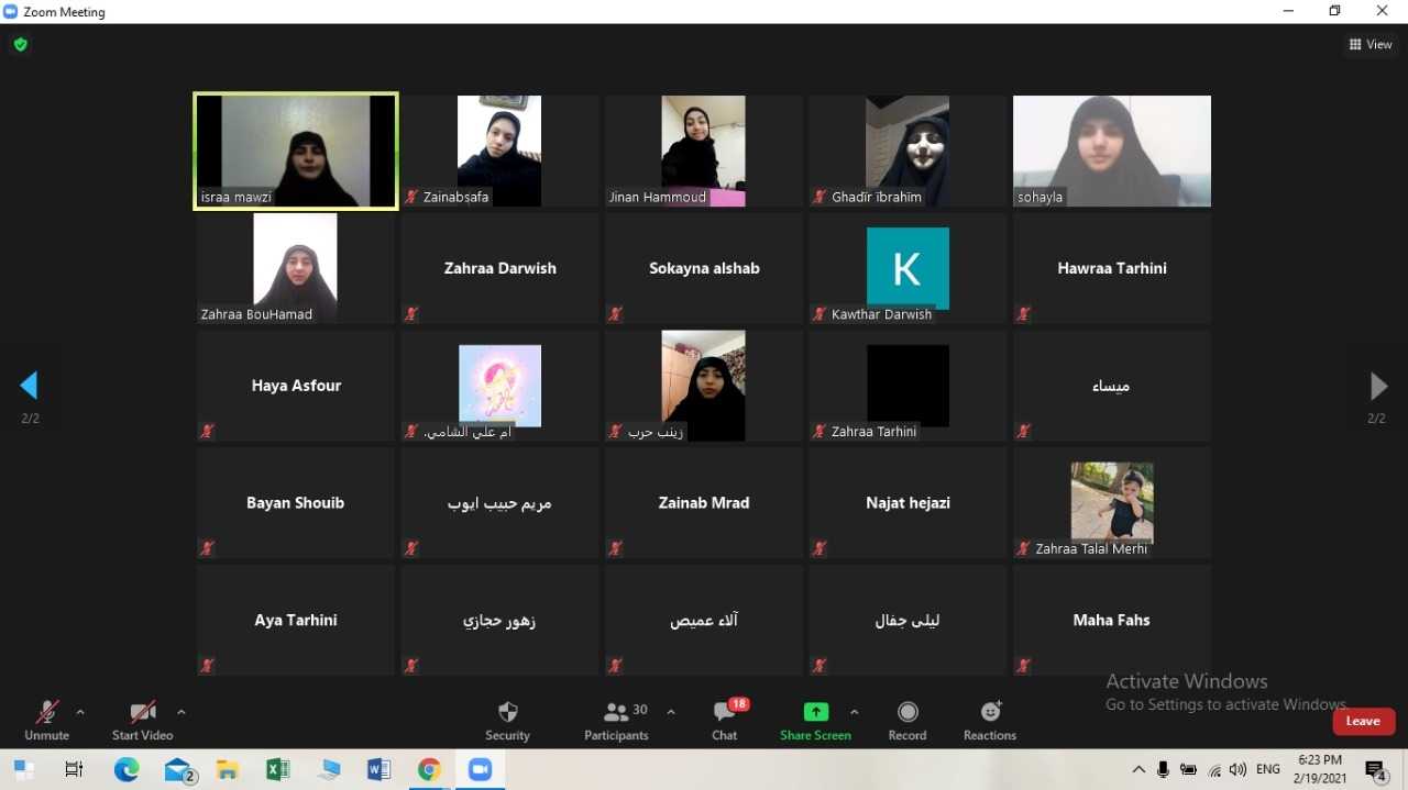 تابعَ اليوم الخامس من دورة المستوى الأول القائدة - أنس الوجود - التي يقيمها قطاع الإمام الرّضا (ع) /جبشيت مفوضية جبل عامل الثانية إلكترونيًا بمُشاركة 29 قائدة. وخلال النهار التدريبي شاركت المتدربات بورش حملت عناوين القدرات الذاتية، معراج السالكين وأسرة مهدي الإلكترونية.