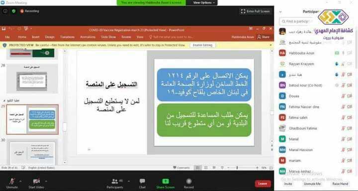 شاركت مفوضية المرشدات في بيروت في الورشة التثقيفية الصحية حول لقاح كورونا التي نفذتها مفوضية تنمية المجتمع مع الدكتورة حبوبة عون عبر برنامج الزووم.
