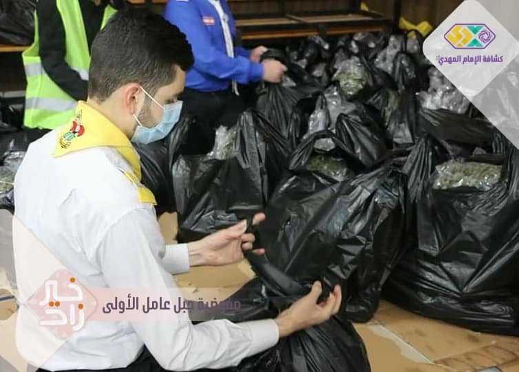 مشاركة جوالة فوج آية الله السيد عبد المحسن فضل الله (قدس سره)/ خربة سلم في تحضير و توزيع حصص غذائية وتموينية في البلدة.