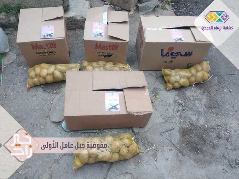 دليلات فوج السيدة سمية/معروب أثناء تجهيز الحصص الغذائية ليتم توزيعها على العوائل المتعففة في البلدة.