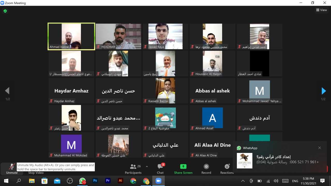 وعصر اليوم إجتمعت قيادة الدورة بالمتدربين على منصة zoom meeting لتعلن بذلك إفتتاح الدورة مع 25 متدربا من كافة القطاعات.