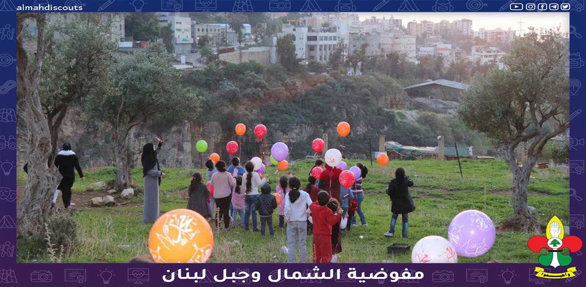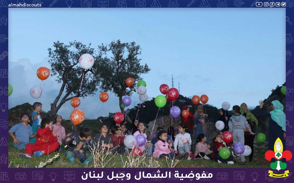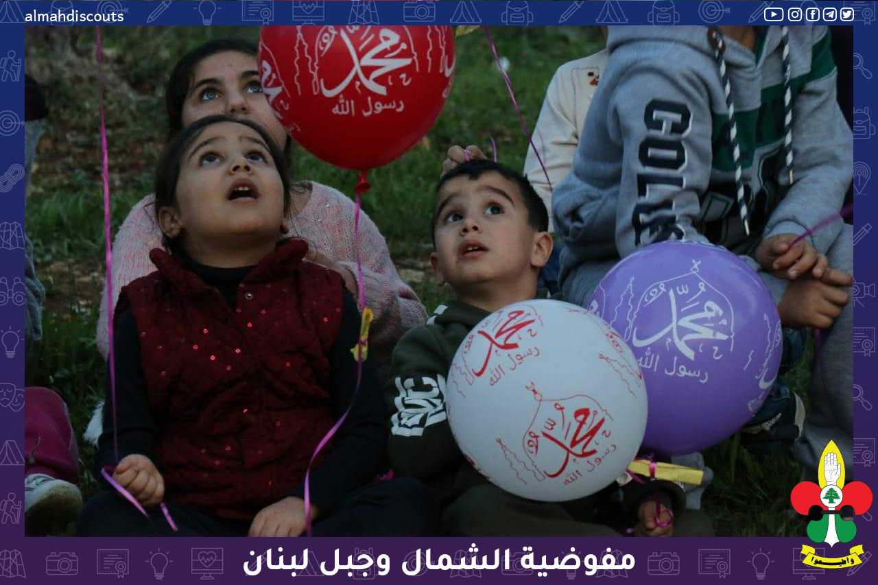 اقامت مرشدات قطاع المتن الشمالي نشاطا ترفيهيا للاطفال بمناسبة ولادة الرسول الاعظم محمد (ص) وزعن فيه الهدايا على المشاركين وتم ارسال البالونات في الهواء احتفالا بالمناسبة المباركة