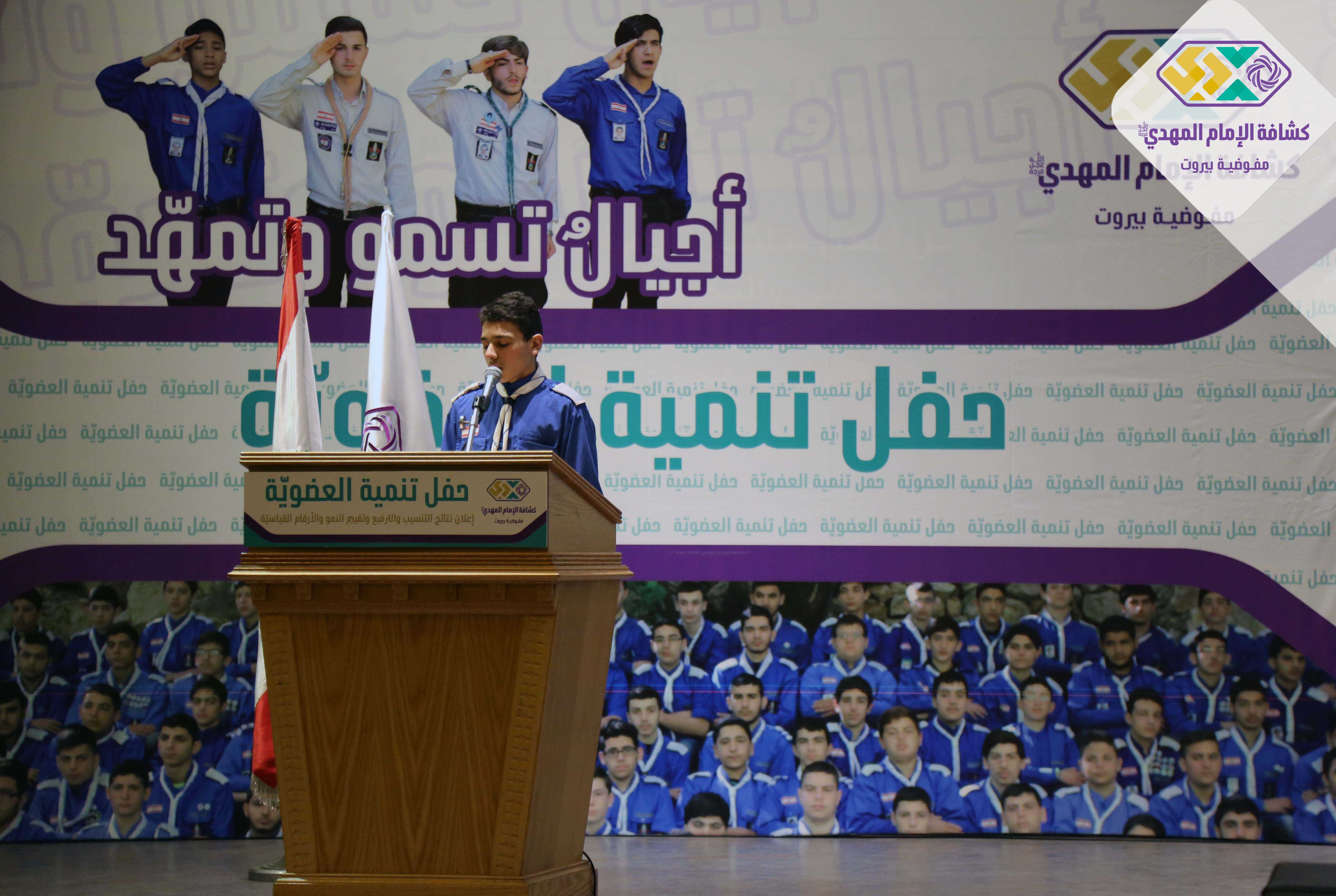 برعاية وحضور مسؤول منطقة بيروت السيد حسين فضل الله أقامت مفوضية بيروت في كشافة الامام المهدي(عج) حفل تنمية العضوية لعام ٢٠٢١ في مسرح مجمع السيدة زينب (ع) ، استهل الحفل بتلاوة عطرة للقرآن الكريم وأداء النشيدين وعرض لتقرير مصور حول أنشطة الجوالة وكلمة لمفوض بيروت الشيخ عمار جواد وبعدها كلمة راعي الحفل تضمنت تنويهاً بالجهود المبذولة وتذكيراً للقادة بضرورة الثبات والاستقامة ومؤكداً عليهم أهمية الاستقطاب كما تم التأكيد على أفواج الخدمة المجتمعية خصوصاً خلال الظروف الراهنة واختتم الحفل باعلان النتائج والحوافز على الافواج المجلية عبر توزيع شهادات التقدير لستة عشر فوج حصلوا على درجة ممتاز.