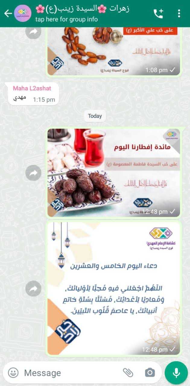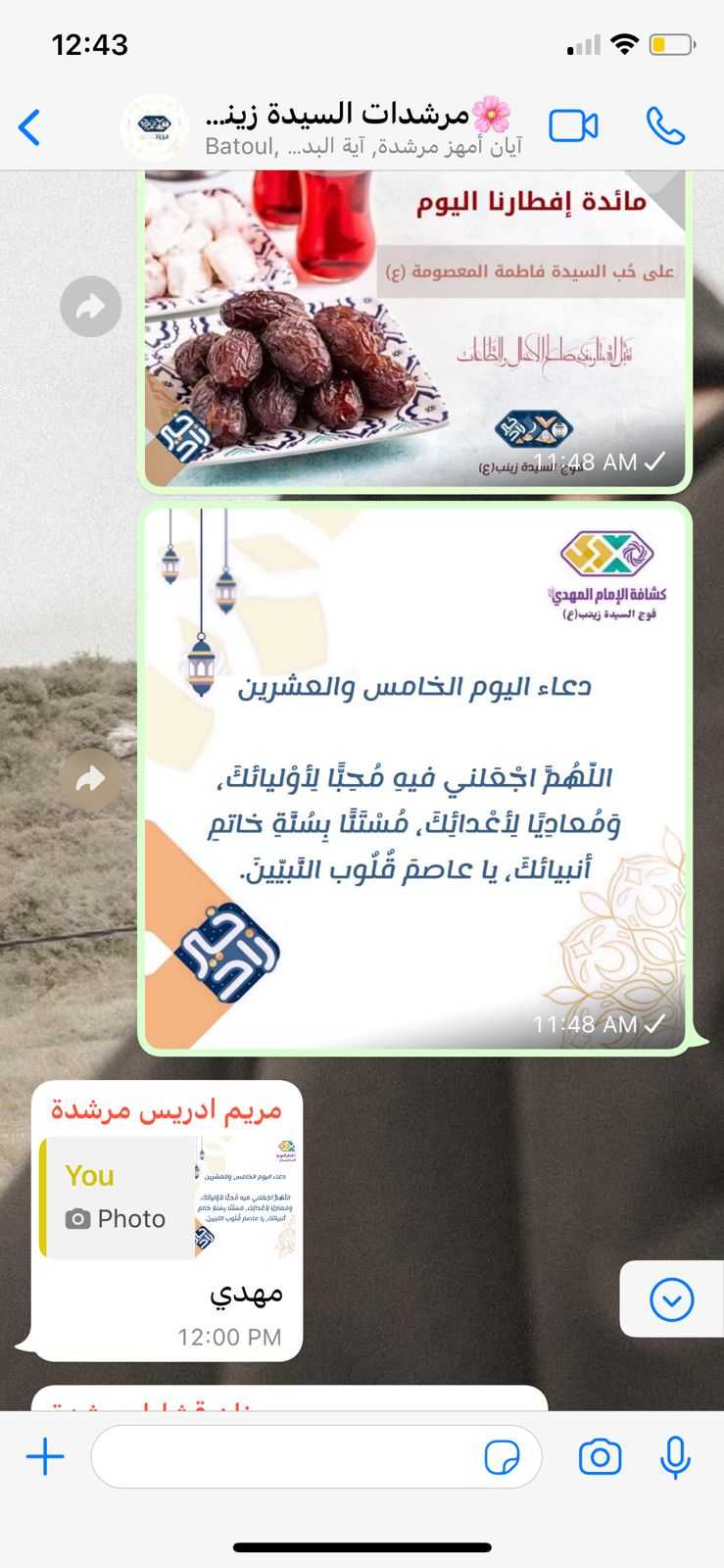 لليوم الخامس والعشرين على التوالي يتابع قطاع المتن الشمالي بنشر الأدعية اليومية لشهر رمضان المبارك على المجموعات الكشفية بالاضافة الى ارسال مائدة افطارنا في كل يوم على حب أئمتنا الكرام #خير_زاد #شهر_رمضان_المبارك #أجيال_تسمو_وتمهد #كشافة_المهدي #مفوضية_جبل_لبنان_والشمال