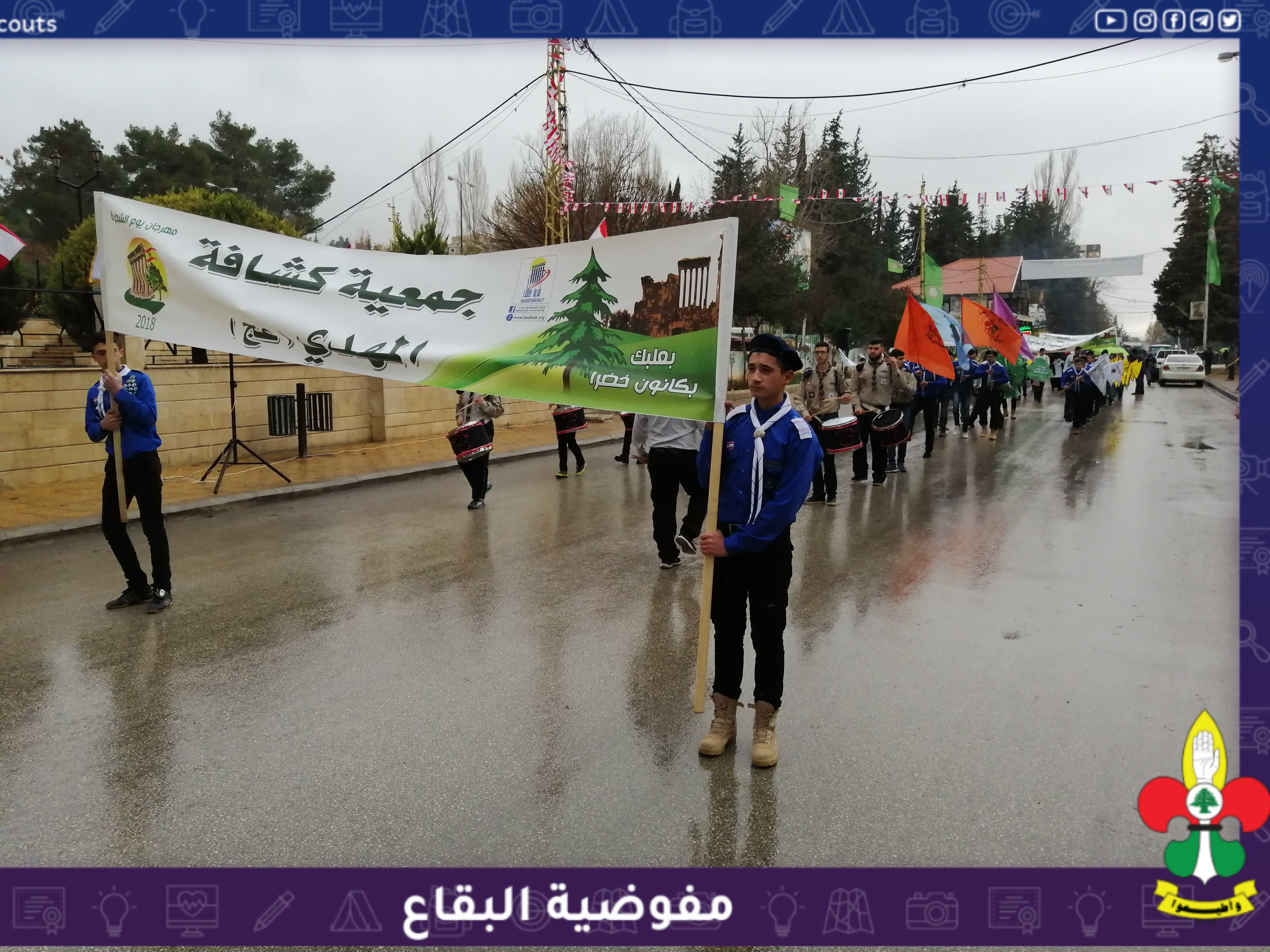 رغم الطقس العاصف والاحوال الجوية الرديئة بادر قطاع بعلبك في كشافة الامام المهدي عج بالاستعراض الكبير الذي نظمته بلدية بعلبك لمناسبة عيد الشجرة.