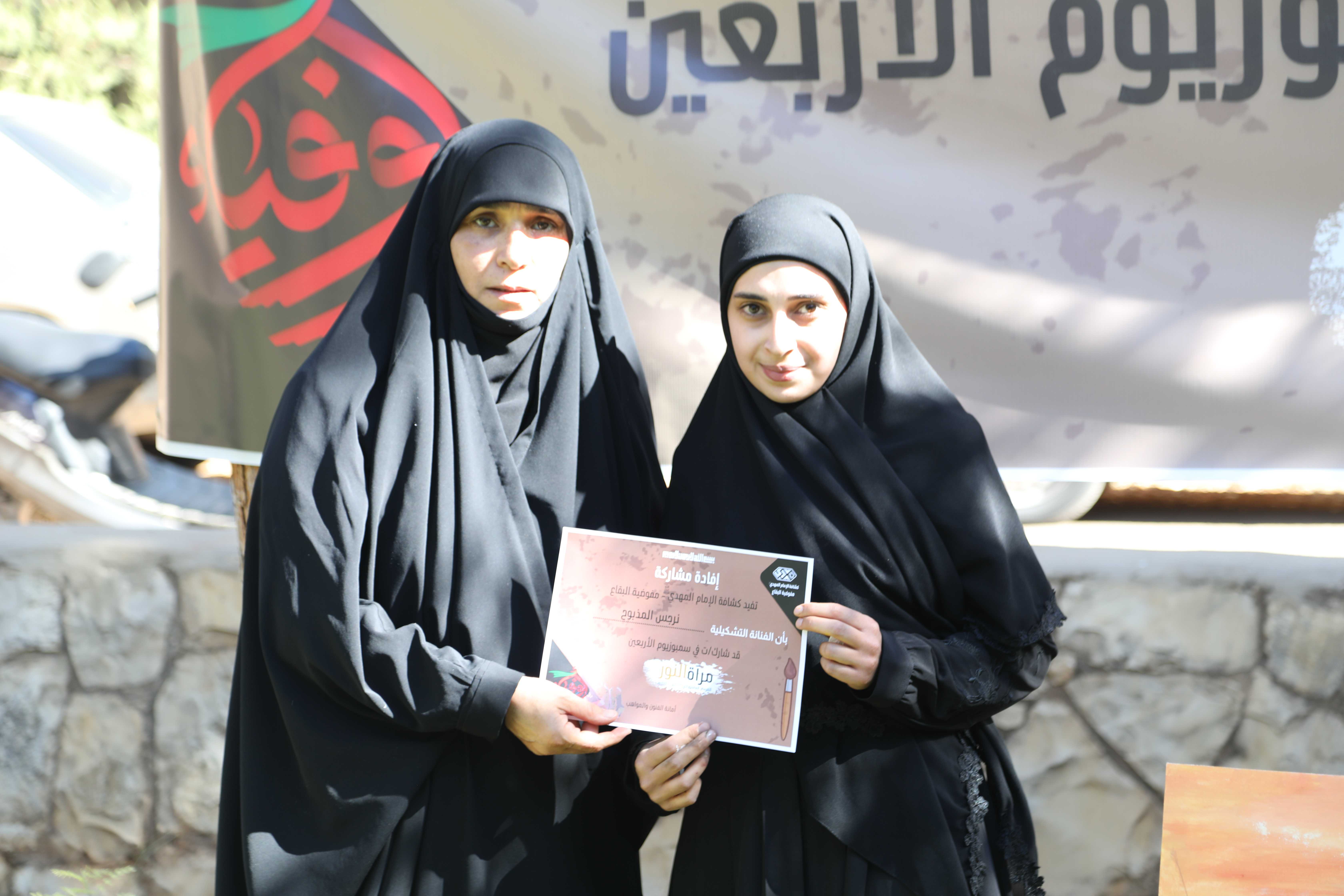 مراة النورالسمبوزيوم الذي نفذته أمانة الفنون في مفوضية البقاع بمناسبة أربعين الامام الحسين عليه السلام والذي ابدعت فيه انامل فنانين تشكيليين من نقابة الفنانين ومنتدى الانامل الذهبية , ومنتدى الريشة البقاعية وموهوبين من معهد l atelier des couleur , اجتمعوا في مدينة السيد عباس الموسوي الشبابية الكشفية ليبدعوا في لوحات فنية من الواقعة الأليمة لكربلاء الإمام الحسين (ع) واختتم المرسم بتوزيع إفادات على الفنانين و الموهوبين