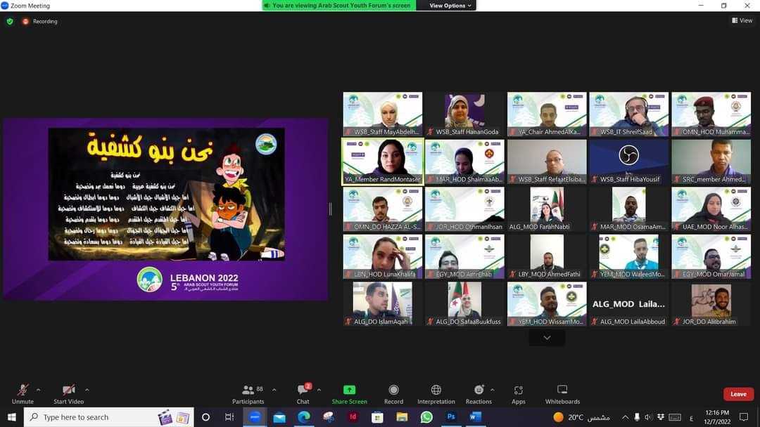 لليوم الثالث على التوالي، تواصلت فعاليات المنتدى الكشفي العربي الخامس للشباب، الذي ينظمه الإقليم الكشفي العربي - المنظمة الكشفية العربية، ويستضيفه افتراضياً اتحاد كشاف لبنان، ويستمر حتى التاسع من الشهر الجاري.