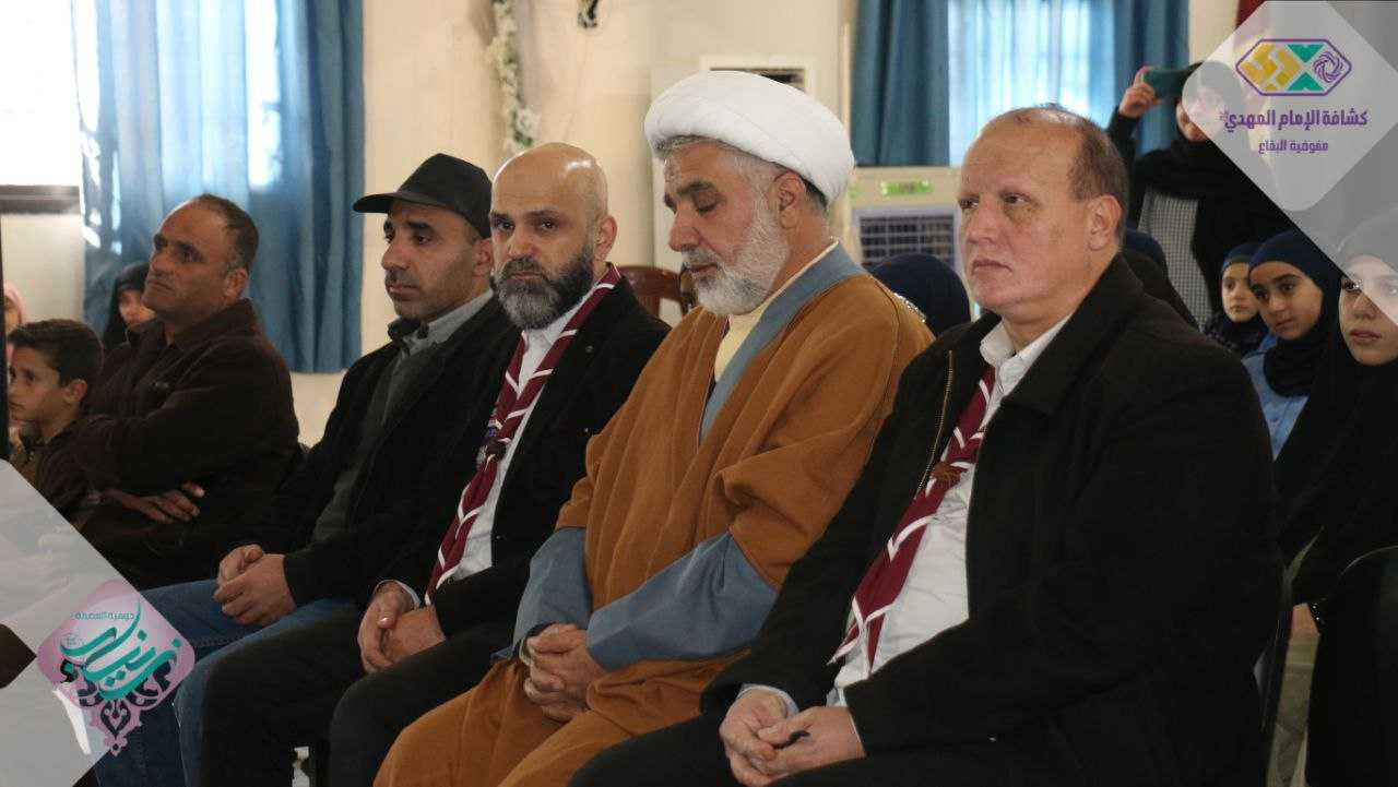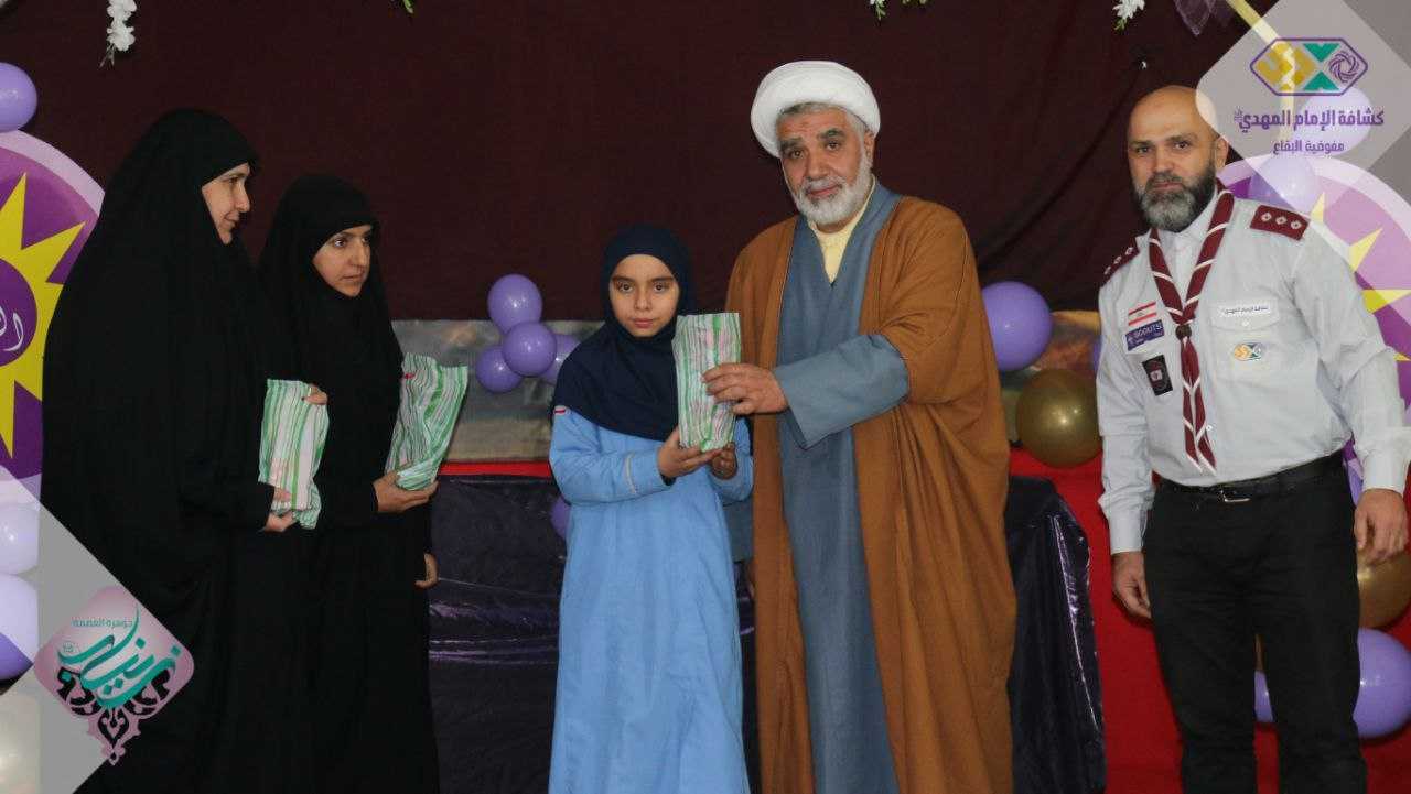 حضر الحفل فضيلة الشيخ ماهر امهز، قائد القطاع ومعاونه، مسؤولة الهيئات النسائية في القطاع، ثلة من القائدات وحشد من الأهالي، وافتتح بمراسم تعظيم للقرآن الكريم، نشيد نجمات البتول، كلمة النجمات، سكتش صغير، كلمة راعي الحفل والختام وقبل نشيد إمام زماني وزعت الهدايا وافادات المشاركة والشارات على المكرمات.