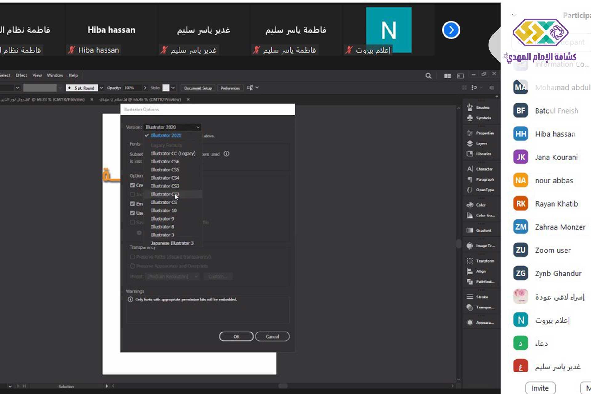 أقيمت الدورة عن بُعد عبر برنامج zoom، وخلالها تعرّفت المُشاركات على أساسيات برنامج adobe illustator، والواجهة الأساسية فيه، إضافةً إلى الأدوات المهمة لإنجاز أي تصميم. كما طبّقت المتدربات كل ما تم التدرّب عليه من خلال التكاليف والنماذج العملية واستفدن من ملاحظات المدرّب وخبرته.
