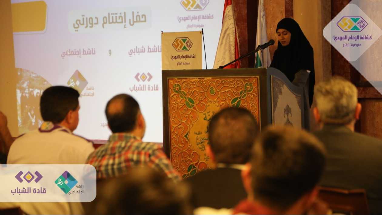 اختتمت مفوضية البقاع في كشافة الإمام المهدي عجل الله تعالى فرجه دورتي ناشط اجتماعي وشبابي المستوى الثاني وذلك في حفل نظمته للمناسبة في المدينة الكشفية في رياق بحضور رئيس جمعية كشافة الإمام المهدي الشيخ نزيه فياض، مفوضة تنمية المجتمع، رؤوساء اتحاد بلديات بعلبك وغربي بعلبك، الأساتذة المدربون والمدربات أعضاء المفوضية العامة وأعضاء مفوضية البقاع.